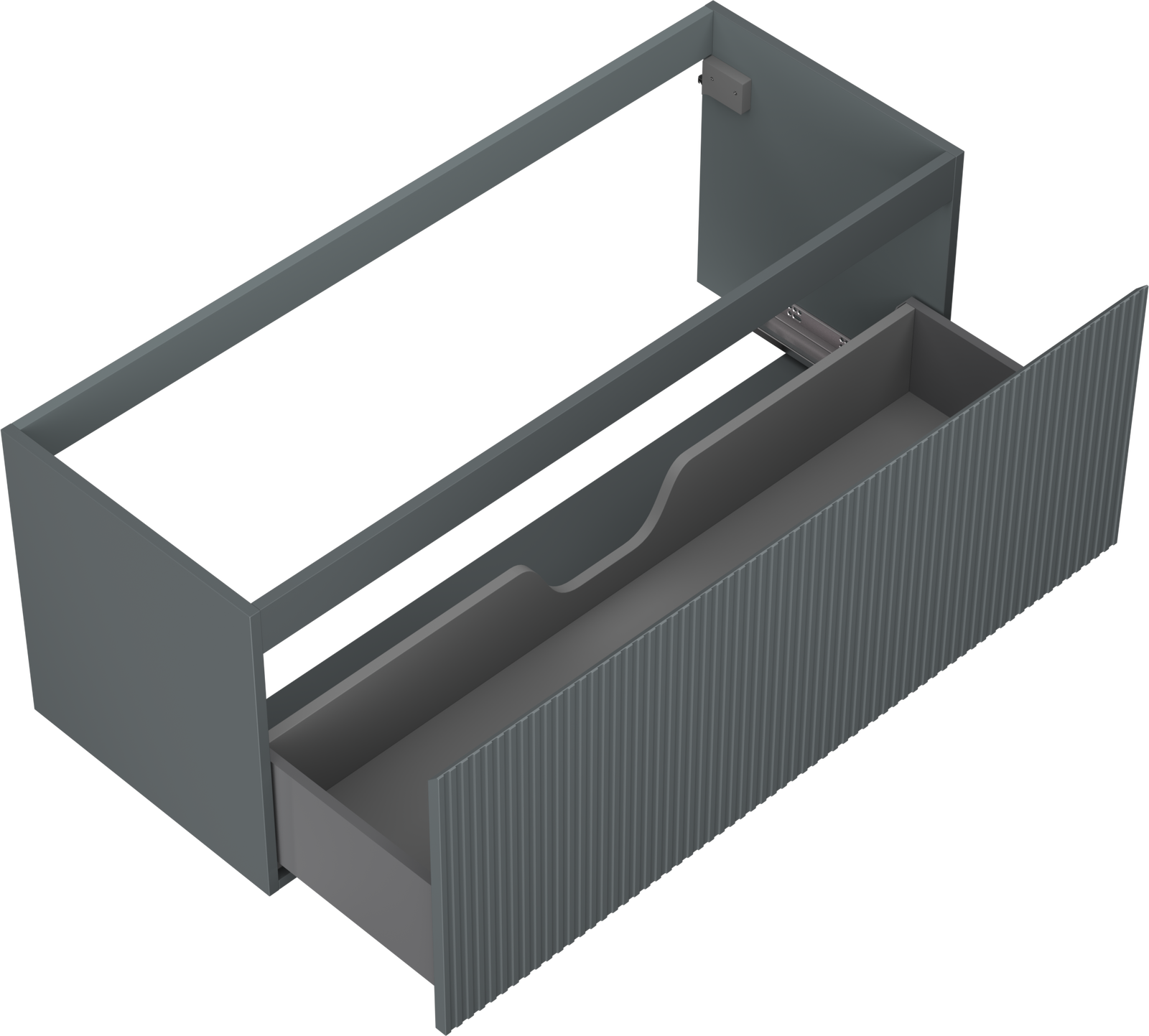 Specyfikacja produktu: Szerokość: 120 cm Wysokość: 47 cm Głębokość: 46 cm Kolor korpus: Grafit mat Materiał korpus: Płyta lakierowana Kolor front: Grafit mat Materiał front: Płyta MDF lakierowana Struktura frontu: Ryflowana Ilość szuflad: 1 Przestronna szuflada z funkcją cichego domyku Pełny wysuw ułatwiający dostęp do zawartości szuflad Powierzchnia odporna na promienie UV Do kompletowania z blatem lub umywalką Otis, Vela Produkt zmontowany
