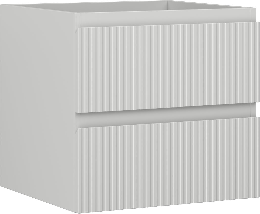 Specyfikacja produktu: Szerokość: 50 cm Wysokość: 47 cm Głębokość: 46 cm Kolor korpus: Szary mat Materiał korpus: Płyta lakierowana Kolor front: Szary mat Materiał front: Płyta MDF lakierowana Struktura frontu: Ryflowana Ilość szuflad: 2 Przestronna szuflada z funkcją cichego domyku Pełny wysuw ułatwiający dostęp do zawartości szuflad Powierzchnia odporna na promienie UV Do kompletowania z blatem lub umywalką Otis, Vela Produkt zmontowany
