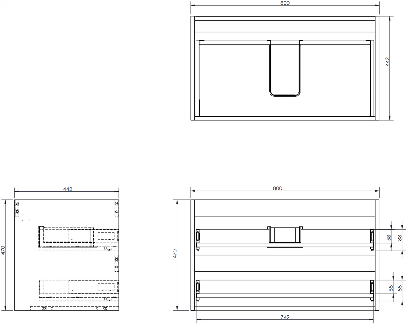 Wycięcie w szufladzie jest zaprojektowane w taki sposób, aby pomieścić syfon, który jest niezbędny w instalacjach umywalkowych. Dzięki temu mebel może być zamontowany w pełni funkcjonalnie, bez konieczności rezygnowania z przestrzeni w szufladzie na rzecz instalacji.