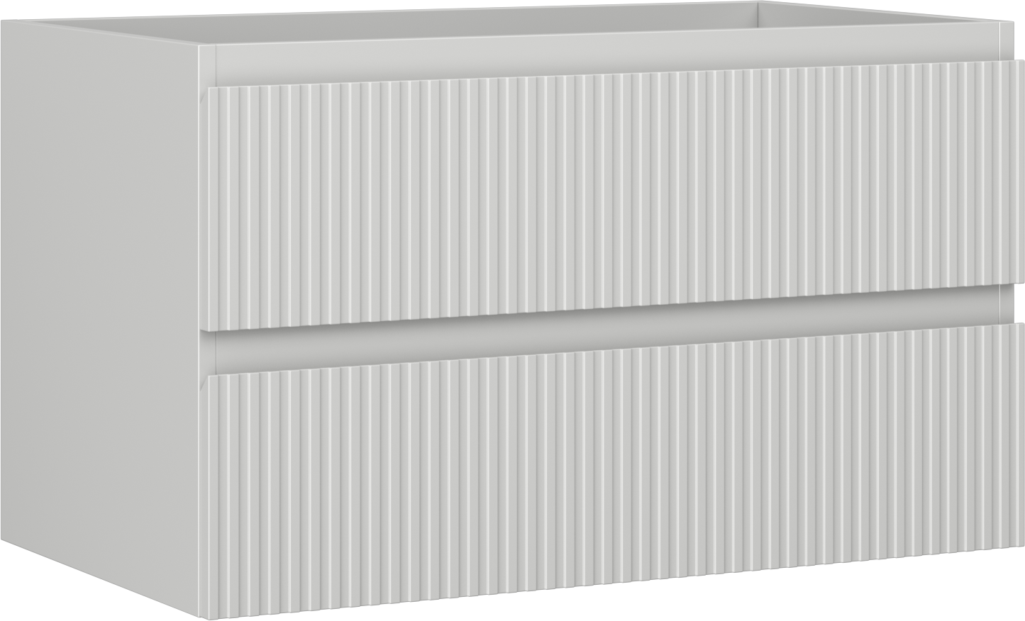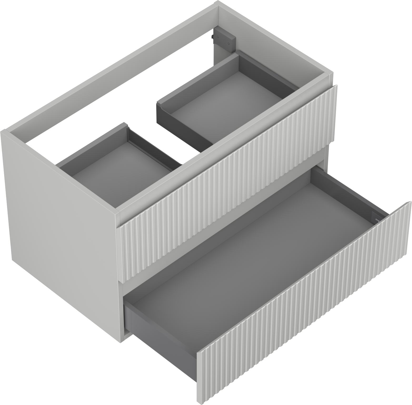 Specyfikacja produktu: Szerokość: 80 cm Wysokość: 47 cm Głębokość: 46 cm Kolor korpus: Szary mat Materiał korpus: Płyta lakierowana Kolor front: Szary mat Materiał front: Płyta MDF lakierowana Struktura frontu: Ryflowana Ilość szuflad: 2 Przestronna szuflada z funkcją cichego domyku Pełny wysuw ułatwiający dostęp do zawartości szuflad Powierzchnia odporna na promienie UV Do kompletowania z blatem lub umywalką Otis, Vela Produkt zmontowany