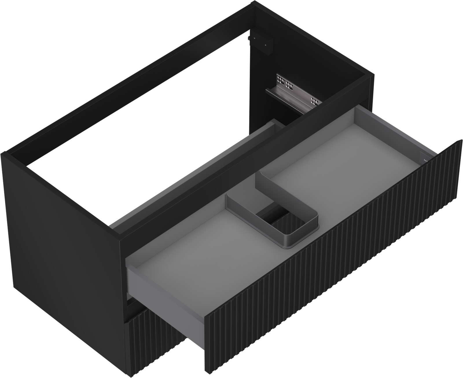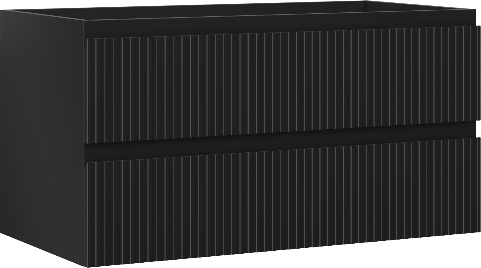 Specyfikacja produktu: Szerokość: 90 cm Wysokość: 47 cm Głębokość: 46 cm Kolor korpus: Czarny mat Materiał korpus: Płyta lakierowana Kolor front: Czarny mat Materiał front: Płyta MDF lakierowana Struktura frontu: Ryflowana Ilość szuflad: 2 Przestronna szuflada z funkcją cichego domyku Pełny wysuw ułatwiający dostęp do zawartości szuflad Powierzchnia odporna na promienie UV Do kompletowania z blatem lub umywalką Otis, Vela Produkt zmontowany