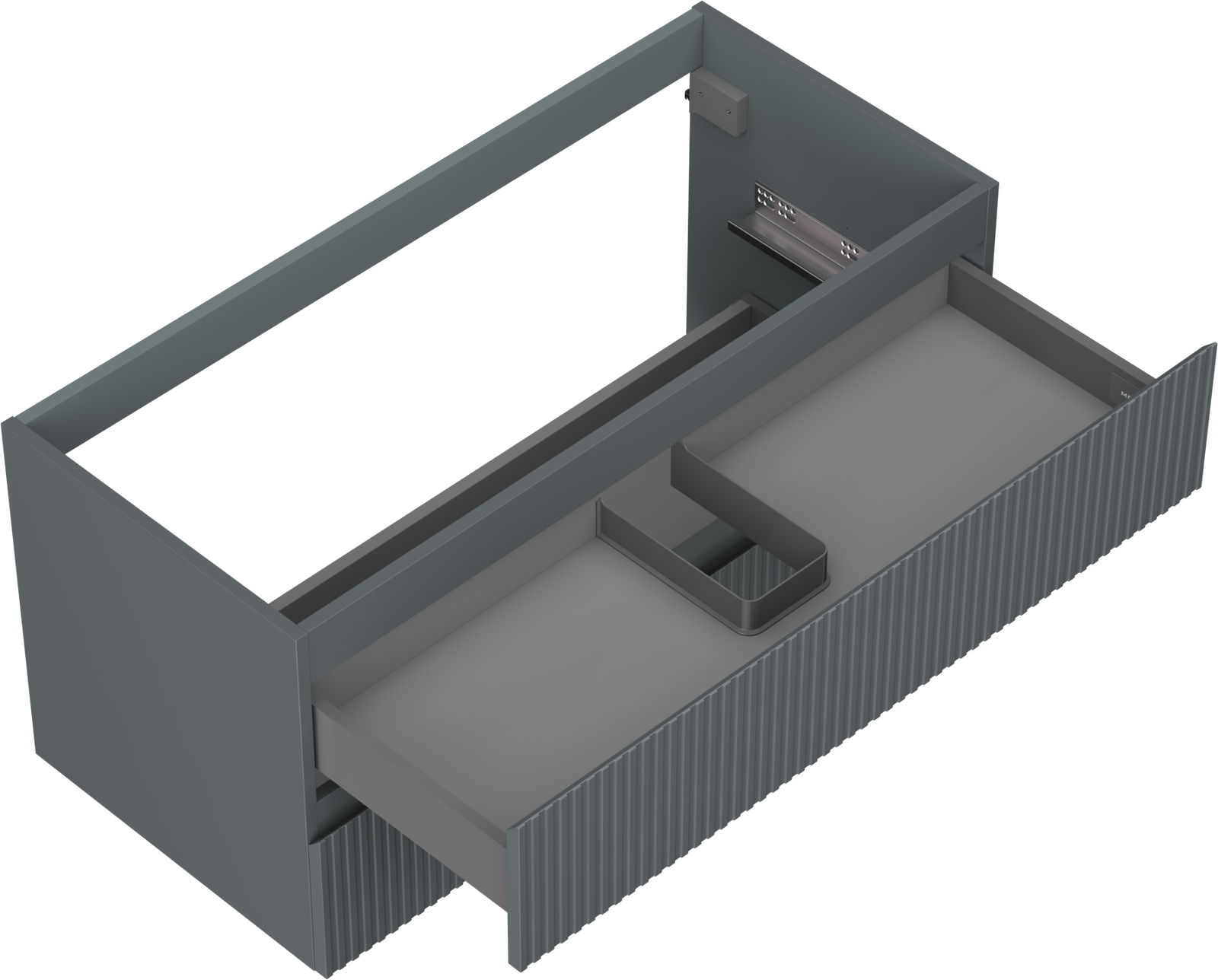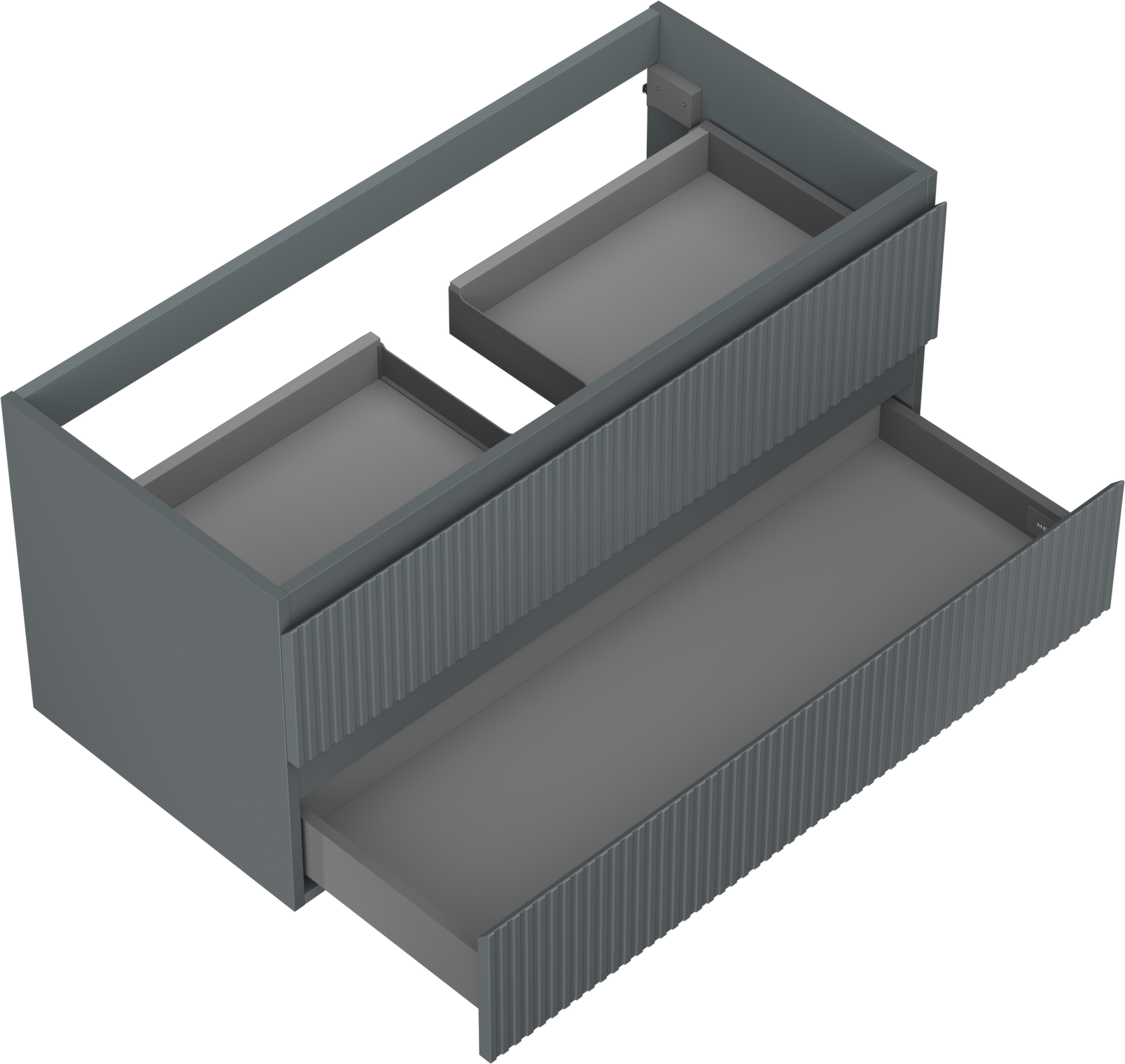 Specyfikacja produktu: Szerokość: 100 cm Wysokość: 47 cm Głębokość: 46 cm Kolor korpus: Grafit mat Materiał korpus: Płyta lakierowana Kolor front: Grafit mat Materiał front: Płyta MDF lakierowana Struktura frontu: Ryflowana Ilość szuflad: 2 Przestronna szuflada z funkcją cichego domyku Pełny wysuw ułatwiający dostęp do zawartości szuflad Powierzchnia odporna na promienie UV Do kompletowania z blatem lub umywalką Otis, Vela Produkt zmontowany
