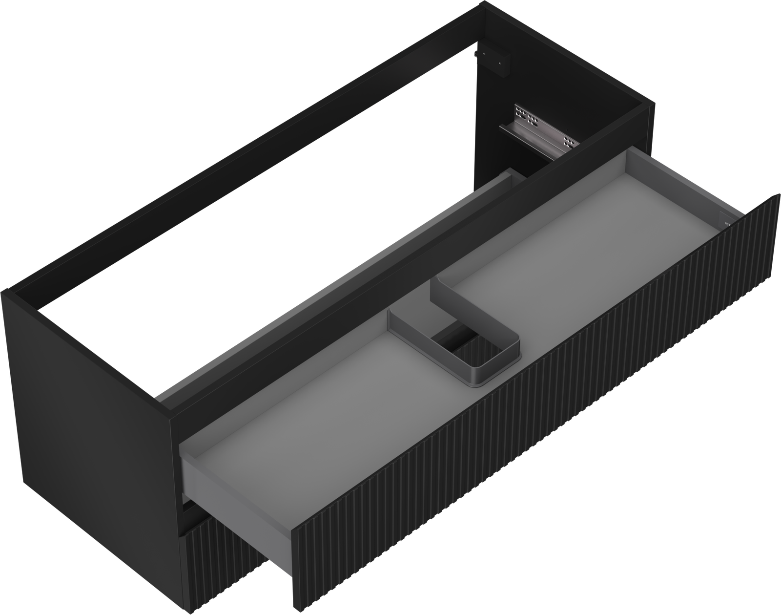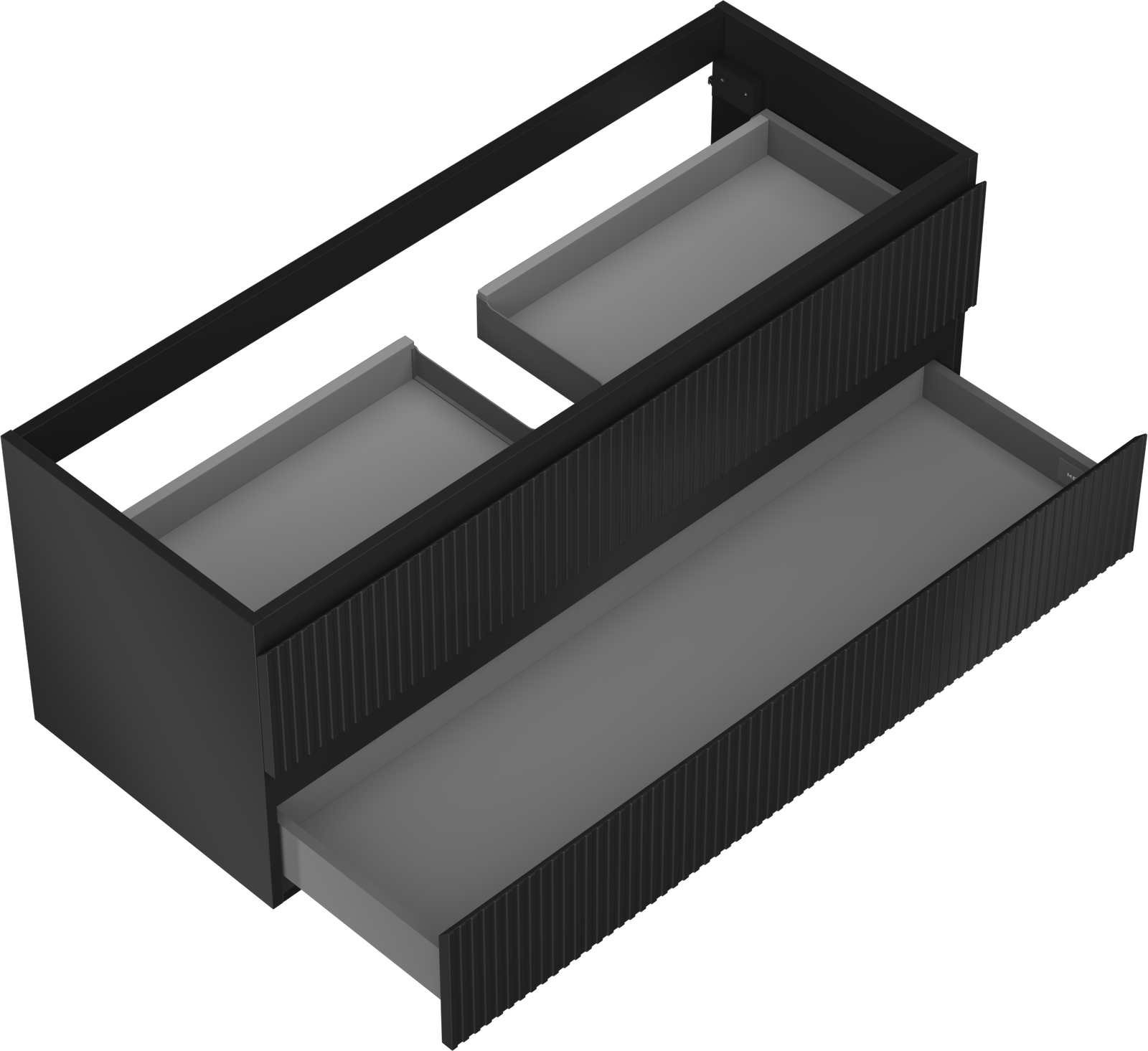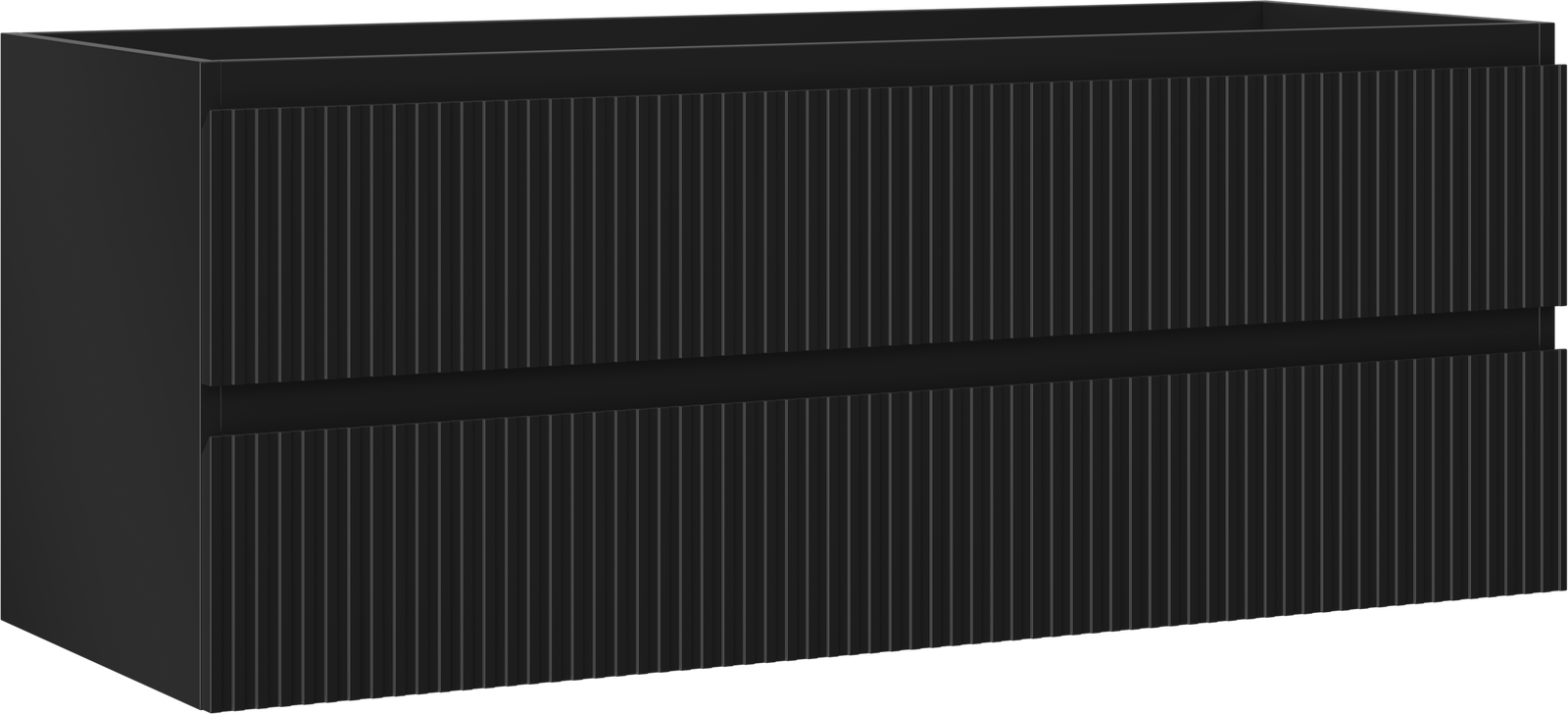 Specyfikacja produktu: Szerokość: 120 cm Wysokość: 47 cm Głębokość: 46 cm Kolor korpus: Czarny mat Materiał korpus: Płyta lakierowana Kolor front: Czarny mat Materiał front: Płyta MDF lakierowana Struktura frontu: Ryflowana Ilość szuflad: 2 Przestronna szuflada z funkcją cichego domyku Pełny wysuw ułatwiający dostęp do zawartości szuflad Powierzchnia odporna na promienie UV Do kompletowania z blatem lub umywalką Otis, Vela Produkt zmontowany
