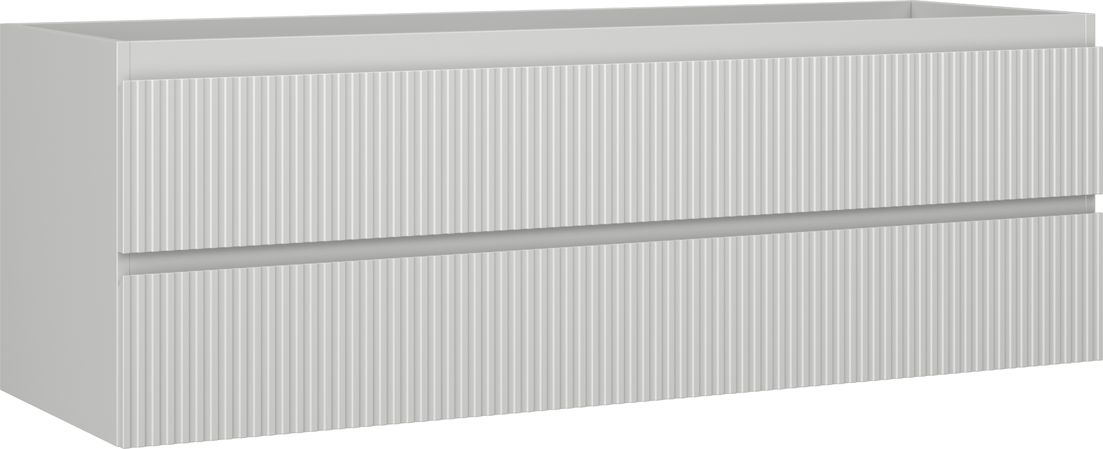 Specyfikacja produktu: Szerokość: 140 cm Wysokość: 47 cm Głębokość: 46 cm Kolor korpus: Szary mat Materiał korpus: Płyta lakierowana Kolor front: Szary mat Materiał front: Płyta MDF lakierowana Struktura frontu: Ryflowana Ilość szuflad: 2 Przestronna szuflada z funkcją cichego domyku Pełny wysuw ułatwiający dostęp do zawartości szuflad Powierzchnia odporna na promienie UV Do kompletowania z blatem lub umywalką Otis, Vela Produkt zmontowany