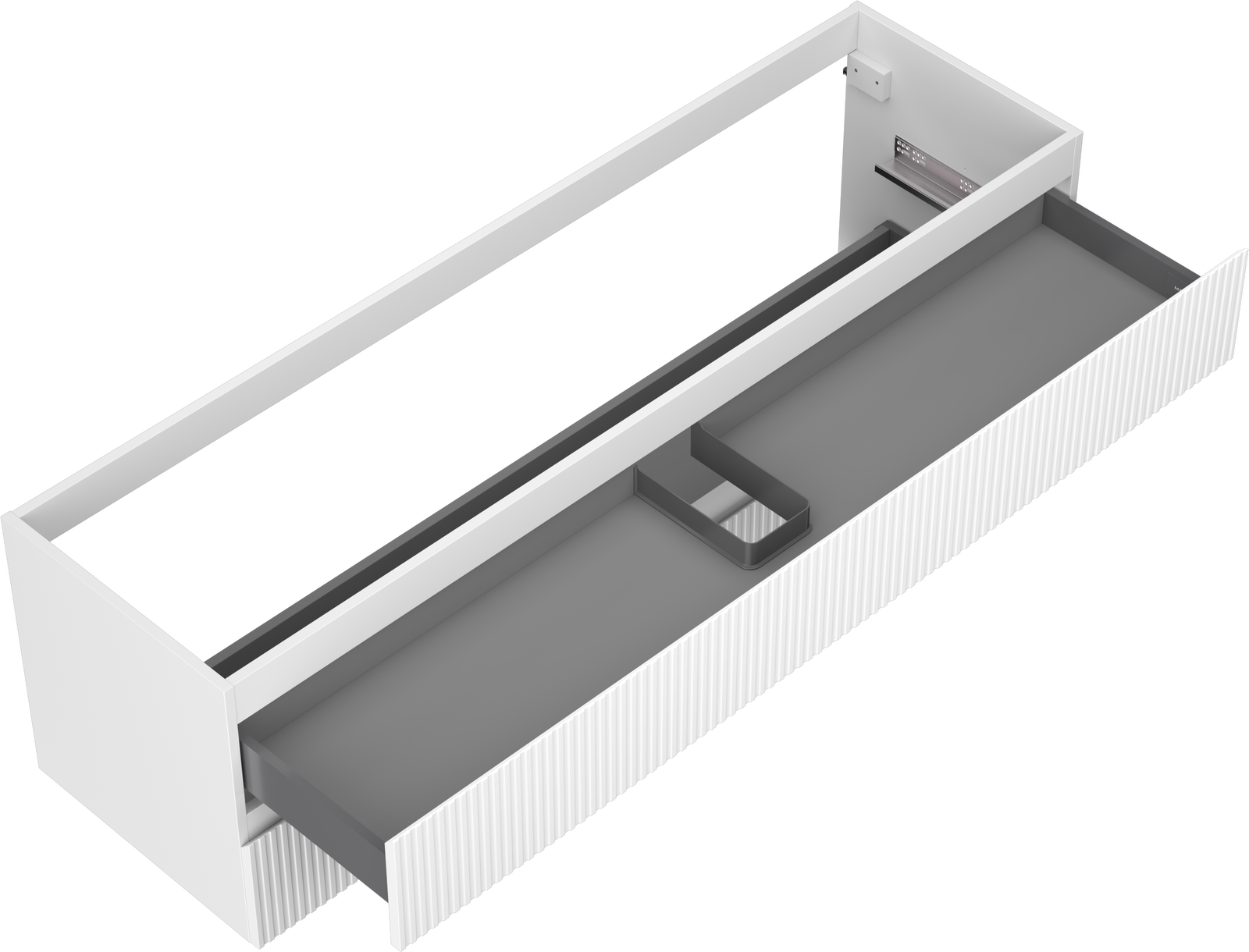 Specyfikacja produktu: Szerokość: 160 cm Wysokość: 47 cm Głębokość: 46 cm Kolor korpus: Biały mat Materiał korpus: Płyta lakierowana Kolor front: Biały mat Materiał front: Płyta MDF lakierowana Struktura frontu: Ryflowana Ilość szuflad: 2 Przestronna szuflada z funkcją cichego domyku Pełny wysuw ułatwiający dostęp do zawartości szuflad Powierzchnia odporna na promienie UV Do kompletowania z blatem lub umywalką Otis, Vela Produkt zmontowany