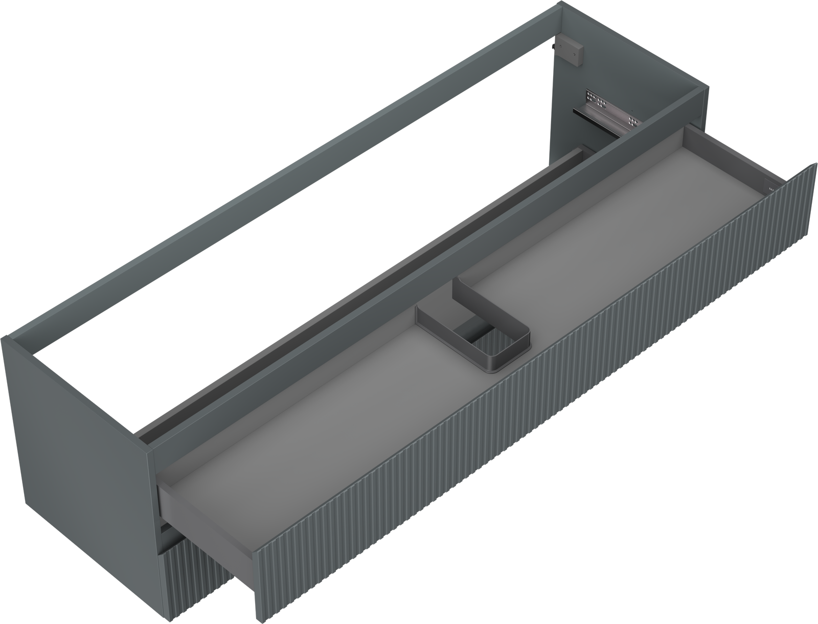 Specyfikacja produktu: Szerokość: 160 cm Wysokość: 47 cm Głębokość: 46 cm Kolor korpus: Grafit mat Materiał korpus: Płyta lakierowana Kolor front: Grafit mat Materiał front: Płyta MDF lakierowana Struktura frontu: Ryflowana Ilość szuflad: 2 Przestronna szuflada z funkcją cichego domyku Pełny wysuw ułatwiający dostęp do zawartości szuflad Powierzchnia odporna na promienie UV Do kompletowania z blatem lub umywalką Otis, Vela Produkt zmontowany