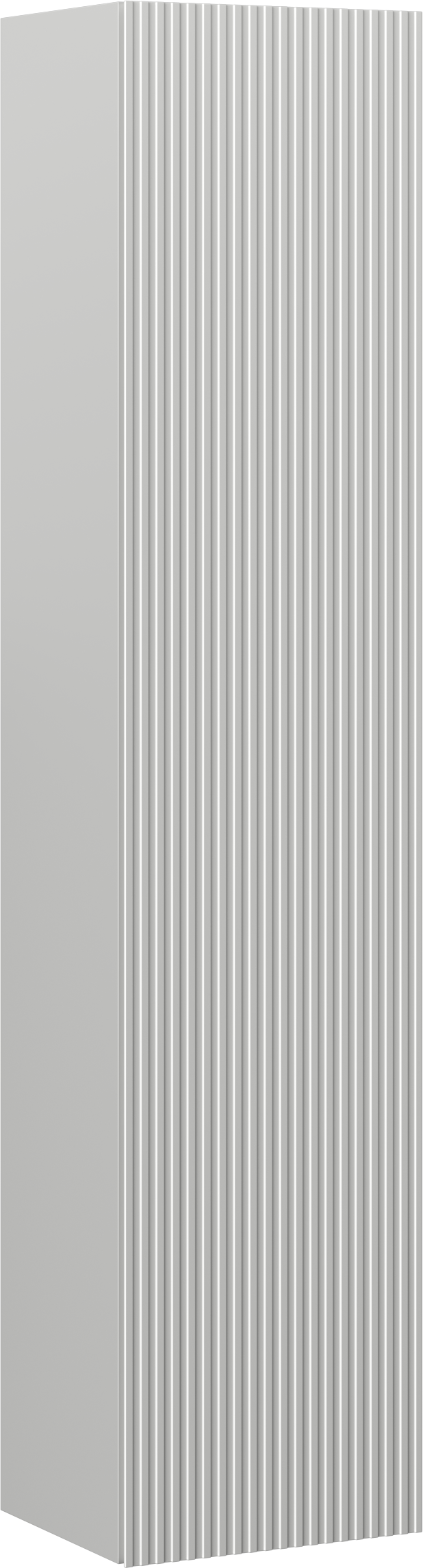 Specyfikacja produktu: Szerokość: 35 cm Wysokość: 160 cm Głębokość: 30 cm Kolor korpus: Szary mat Materiał korpus: Płyta lakierowana Kolor front: Szary mat Materiał front: Płyta MDF lakierowana Struktura frontu: Ryflowana Ilość drzwi: 1 5 półek (1 półka środkowa stała oraz 4 półki z możliwością regulacji) Zawiasy z funkcją cichego domyku Uniwersalny montaż drzwi (lewo/prawo) Powierzchnia odporna na promienie UV Produkt zmontowany