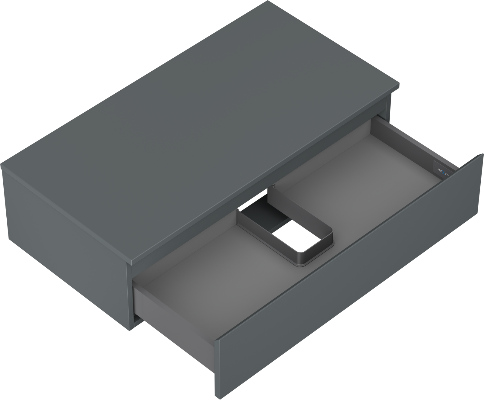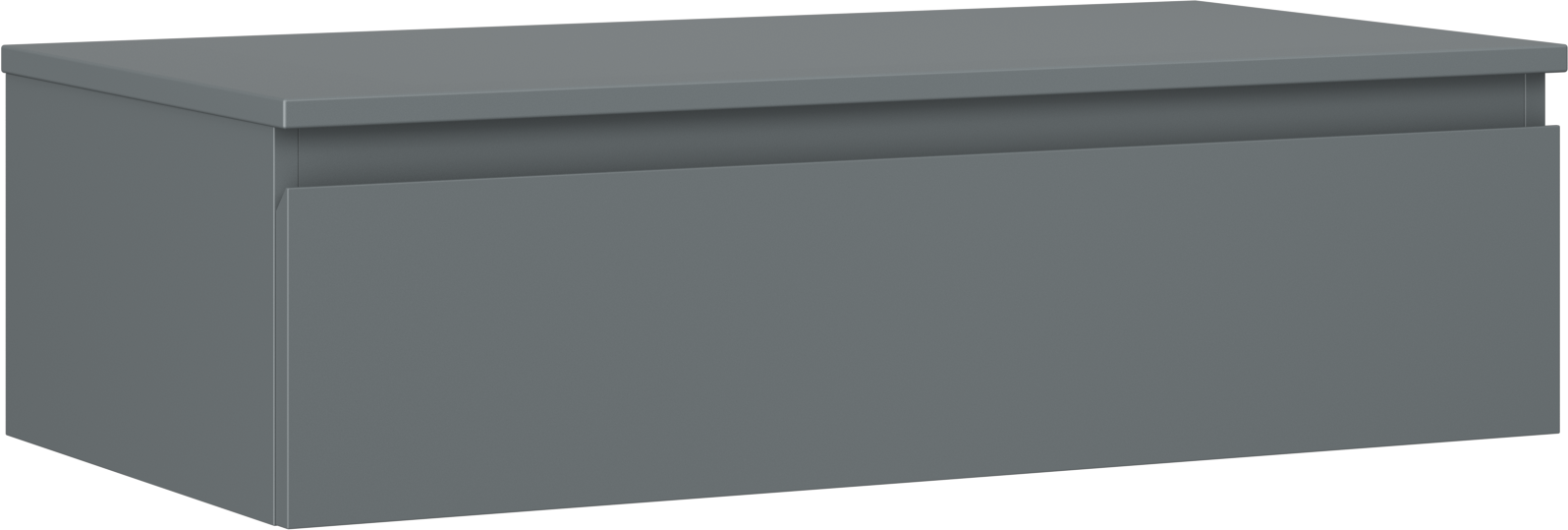 Specyfikacja produktu: Wymiary szafki: Szerokość: 90 cm Wysokość: 23,5 cm Głębokość: 46 cm Kolor korpus: Grafit mat Materiał korpus: Płyta lakierowana Kolor front: Grafit mat Materiał front: Płyta MDF lakierowana Struktura frontu: Gładka Ilość szuflad: 1 Przestronna szuflada z funkcją cichego domyku Pełny wysuw ułatwiający dostęp do zawartości szuflad Powierzchnia odporna na promienie UV Wymiary blatu: Szerokość: 90,6 cm Głębokość: 46,5 cm Grubość: 1,8 cm Kolor blatu: Grafit mat Materiał blatu: Płyta MDF lakierowana Powierzchnia odporna na promienie UV Idealny jako podstawa do umywalek nablatowych Produkt zmontowany