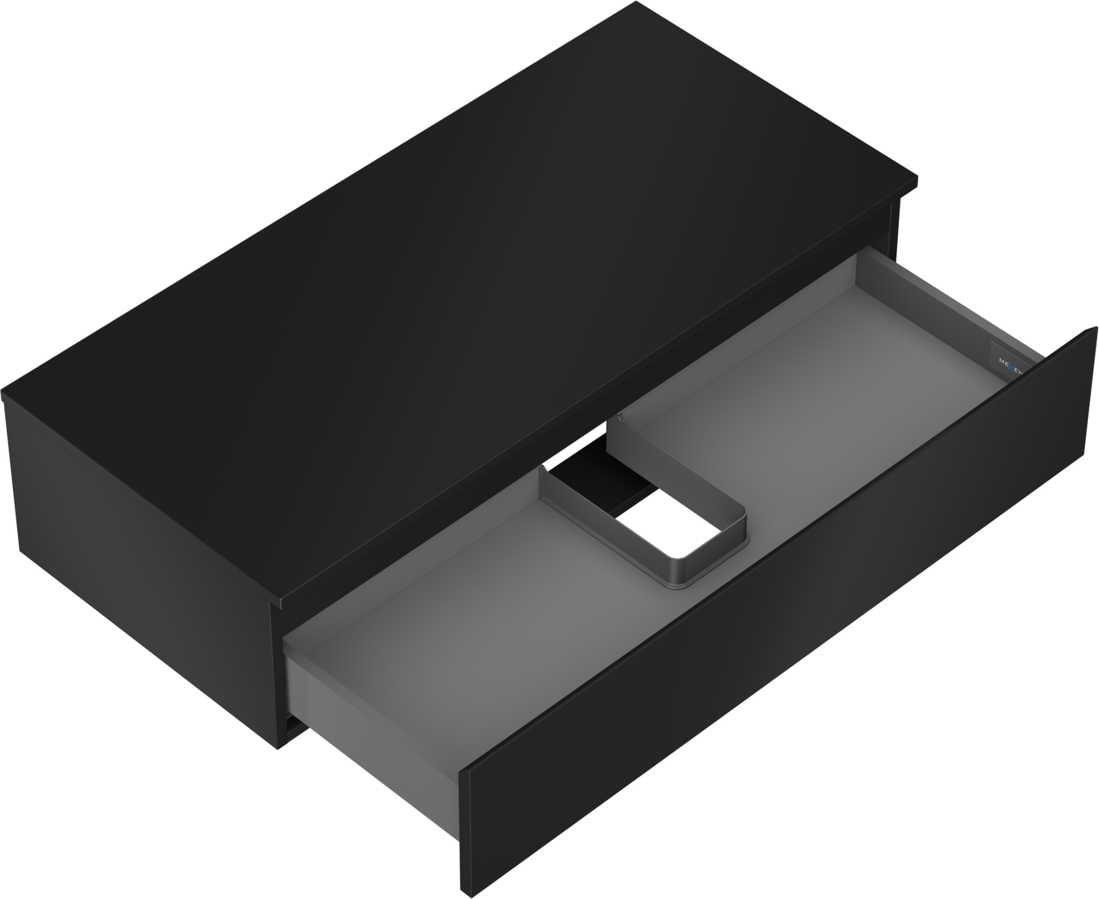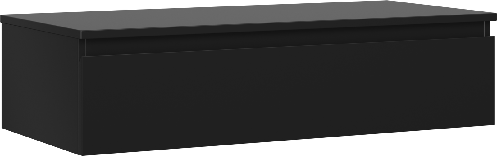 Specyfikacja produktu: Wymiary szafki: Szerokość: 100 cm Wysokość: 23,5 cm Głębokość: 46 cm Kolor korpus: Czarny mat Materiał korpus: Płyta lakierowana Kolor front: Czarny mat Materiał front: Płyta MDF lakierowana Struktura frontu: Gładka Ilość szuflad: 1 Przestronna szuflada z funkcją cichego domyku Pełny wysuw ułatwiający dostęp do zawartości szuflad Powierzchnia odporna na promienie UV Wymiary blatu: Szerokość: 100,6 cm Głębokość: 46,5 cm Grubość: 1,8 cm Kolor blatu: Czarny mat Materiał blatu: Płyta MDF lakierowana Powierzchnia odporna na promienie UV Idealny jako podstawa do umywalek nablatowych Produkt zmontowany