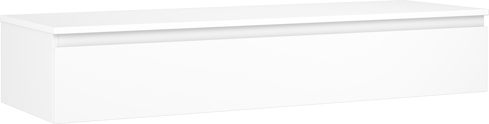 Specyfikacja produktu: Wymiary szafki: Szerokość: 140 cm Wysokość: 23,5 cm Głębokość: 46 cm Kolor korpus: Biały mat Materiał korpus: Płyta lakierowana Kolor front: Biały mat Materiał front: Płyta MDF lakierowana Struktura frontu: Gładka Ilość szuflad: 1 Przestronna szuflada z funkcją cichego domyku Pełny wysuw ułatwiający dostęp do zawartości szuflad Powierzchnia odporna na promienie UV Wymiary blatu: Szerokość: 140,6 cm Głębokość: 46,5 cm Grubość: 1,8 cm Kolor blatu: Biały mat Materiał blatu: Płyta MDF lakierowana Powierzchnia odporna na promienie UV Idealny jako podstawa do umywalek nablatowych Produkt zmontowany