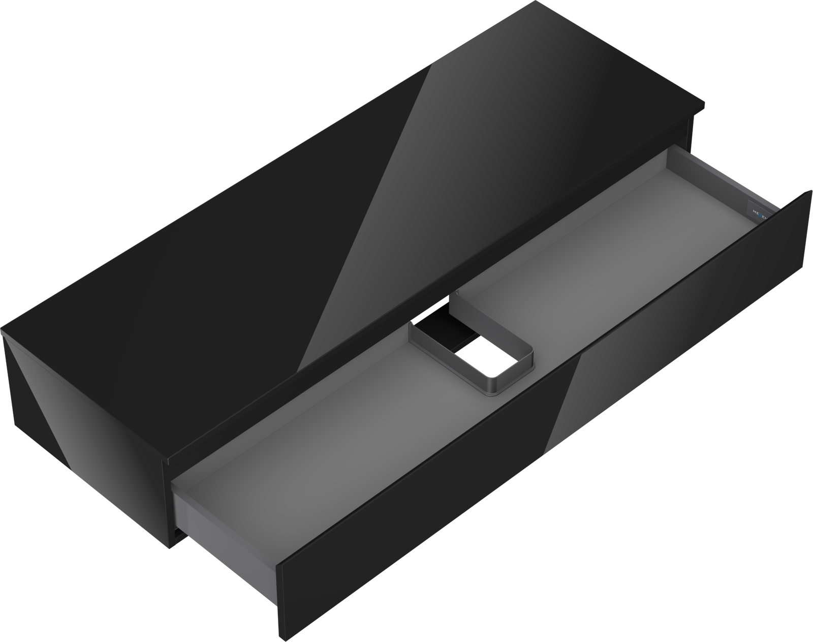 Wycięcie w szufladzie jest zaprojektowane w taki sposób, aby pomieścić syfon, który jest niezbędny w instalacjach umywalkowych. Dzięki temu mebel może być zamontowany w pełni funkcjonalnie, bez konieczności rezygnowania z przestrzeni w szufladzie na rzecz instalacji.