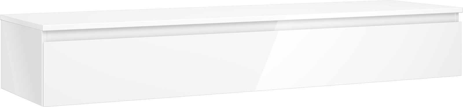 Specyfikacja produktu: Wymiary szafki: Szerokość: 160 cm Wysokość: 23,5 cm Głębokość: 46 cm Kolor korpus: Biały połysk  Materiał korpus: Płyta lakierowana Kolor front: Biały połysk Materiał front: Płyta MDF lakierowana Struktura frontu: Gładka Ilość szuflad: 1 Przestronna szuflada z funkcją cichego domyku Pełny wysuw ułatwiający dostęp do zawartości szuflad Powierzchnia odporna na promienie UV Wymiary blatu: Szerokość: 160,6 cm Głębokość: 46,5 cm Grubość: 1,8 cm Kolor blatu: Biały połysk Materiał blatu: Płyta MDF lakierowana Powierzchnia odporna na promienie UV Idealny jako podstawa do umywalek nablatowych Produkt zmontowany