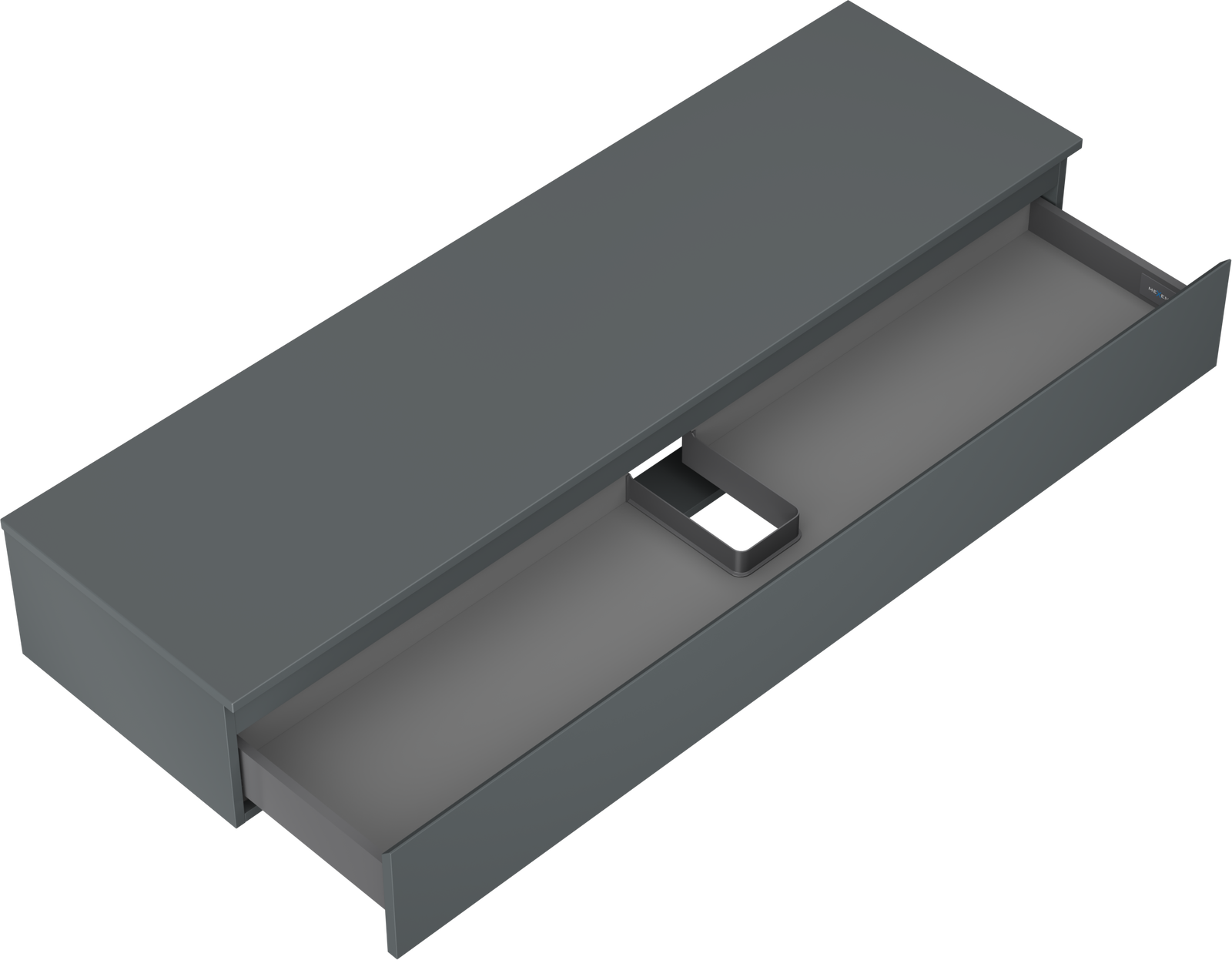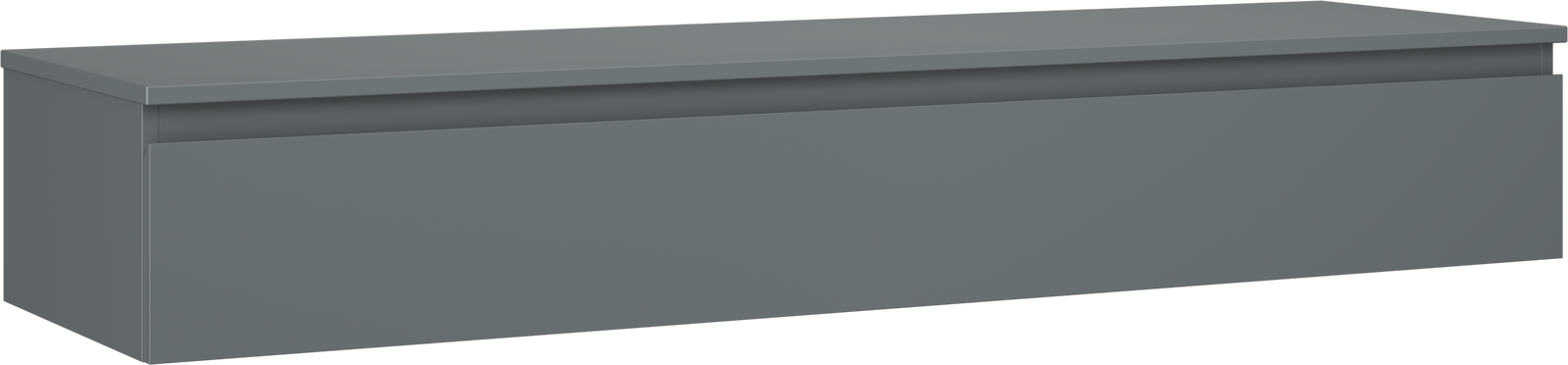 Specyfikacja produktu: Wymiary szafki: Szerokość: 160 cm Wysokość: 23,5 cm Głębokość: 46 cm Kolor korpus: Grafit mat Materiał korpus: Płyta lakierowana Kolor front: Grafit mat Materiał front: Płyta MDF lakierowana Struktura frontu: Gładka Ilość szuflad: 1 Przestronna szuflada z funkcją cichego domyku Pełny wysuw ułatwiający dostęp do zawartości szuflad Powierzchnia odporna na promienie UV Wymiary blatu: Szerokość: 160,6 cm Głębokość: 46,5 cm Grubość: 1,8 cm Kolor blatu: Grafit mat Materiał blatu: Płyta MDF lakierowana Powierzchnia odporna na promienie UV Idealny jako podstawa do umywalek nablatowych Produkt zmontowany