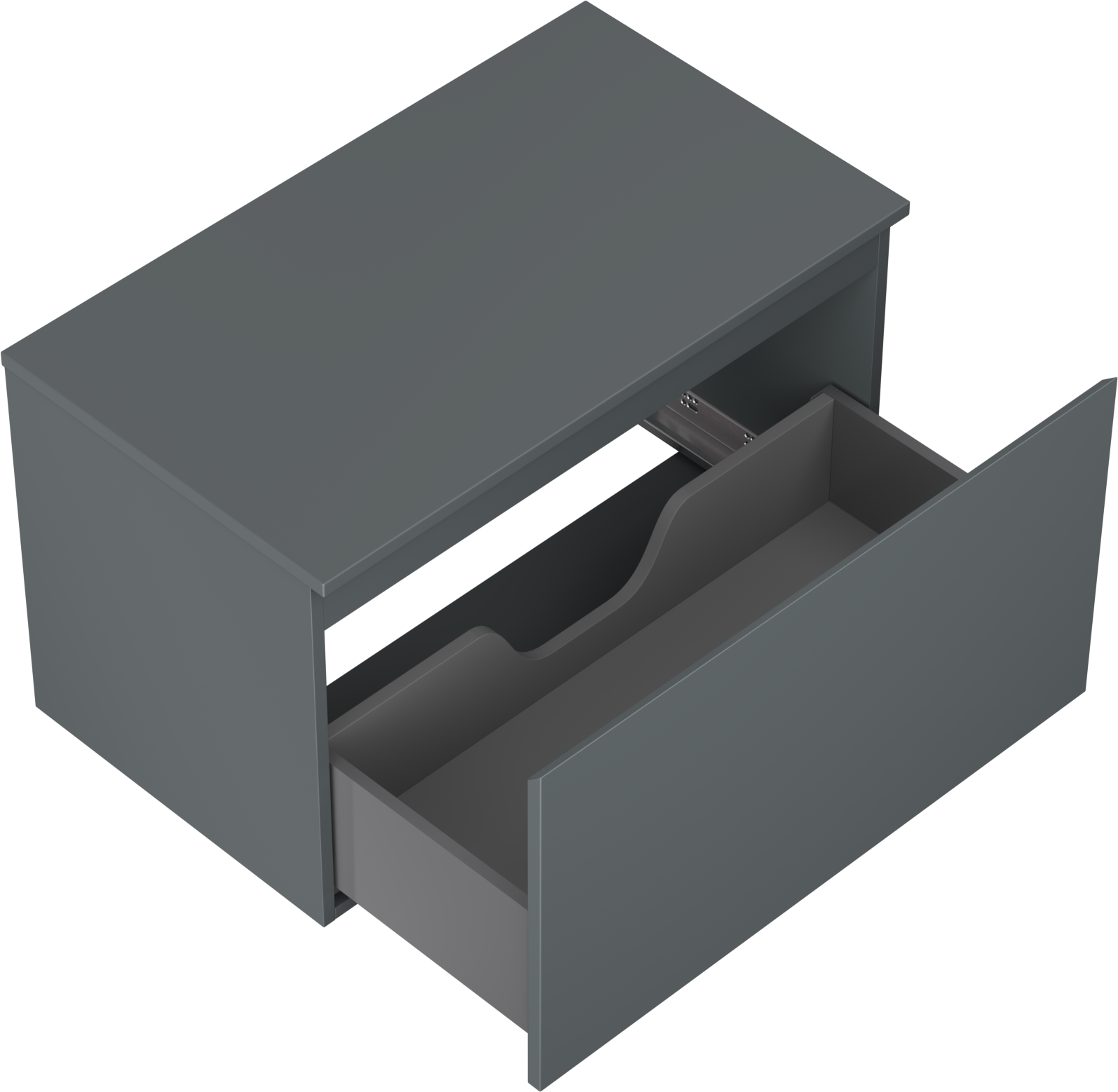 Specyfikacja produktu: Wymiary szafki: Szerokość: 80 cm Wysokość: 47 cm Głębokość: 46 cm Kolor korpus: Grafit mat Materiał korpus: Płyta lakierowana Kolor front: Grafit mat Materiał front: Płyta MDF lakierowana Struktura frontu: Gładka Ilość szuflad: 1 Przestronna szuflada z funkcją cichego domyku Pełny wysuw ułatwiający dostęp do zawartości szuflad Powierzchnia odporna na promienie UV Wymiary blatu: Szerokość: 80,6 cm Głębokość: 46,5 cm Grubość: 1,8 cm Kolor blatu: Grafit mat Materiał blatu: Płyta MDF lakierowana Powierzchnia odporna na promienie UV Idealny jako podstawa do umywalek nablatowych Produkt zmontowany