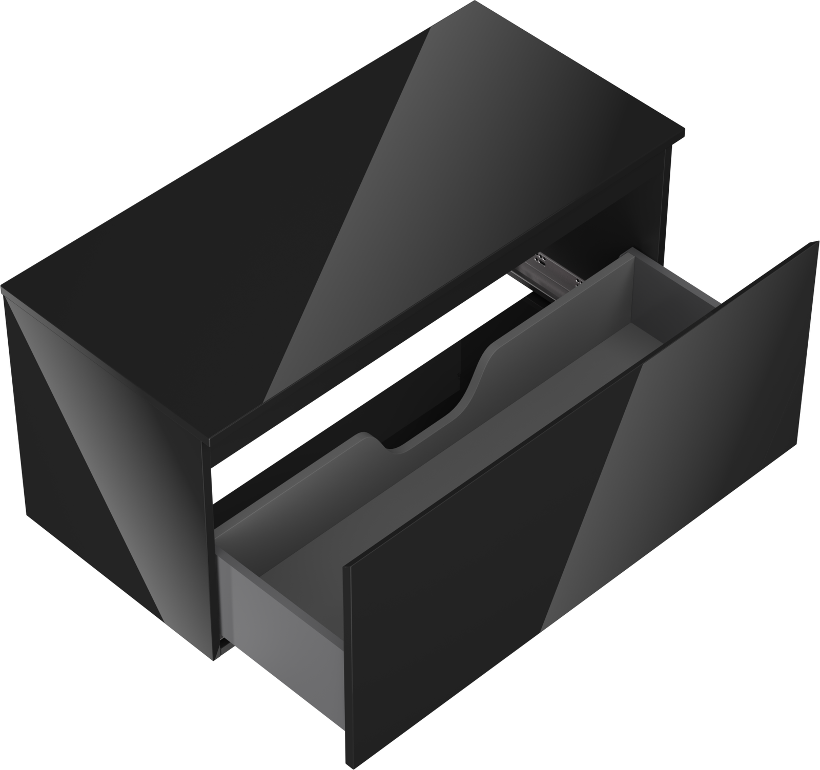 Specyfikacja produktu: Wymiary szafki: Szerokość: 100 cm Wysokość: 47 cm Głębokość: 46 cm Kolor korpus: Czarny połysk  Materiał korpus: Płyta lakierowana Kolor front: Czarny połysk Materiał front: Płyta MDF lakierowana Struktura frontu: Gładka Ilość szuflad: 1 Przestronna szuflada z funkcją cichego domyku Pełny wysuw ułatwiający dostęp do zawartości szuflad Powierzchnia odporna na promienie UV Wymiary blatu: Szerokość: 100,6 cm Głębokość: 46,5 cm Grubość: 1,8 cm Kolor blatu: Czarny połysk Materiał blatu: Płyta MDF lakierowana Powierzchnia odporna na promienie UV Idealny jako podstawa do umywalek nablatowych Produkt zmontowany