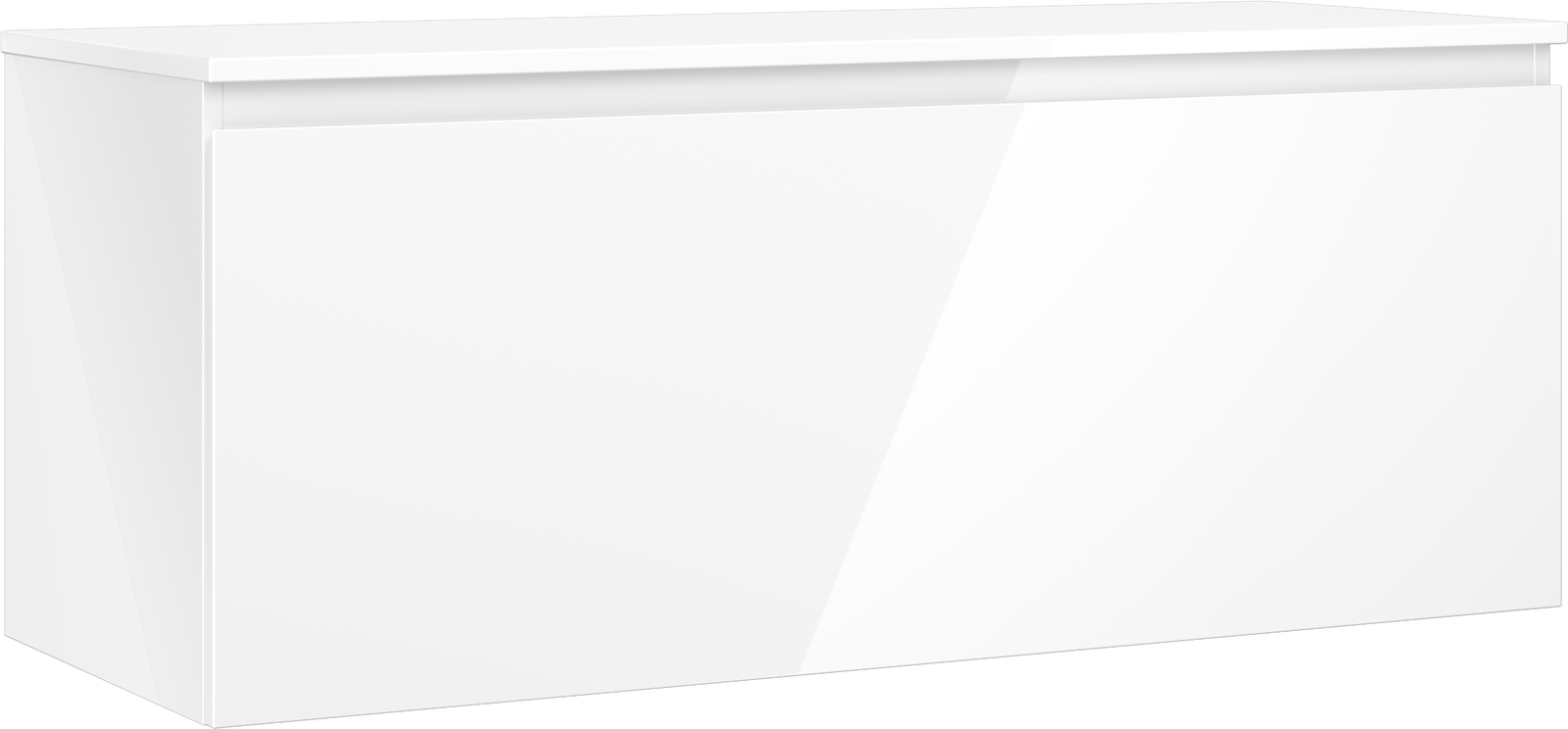 Specyfikacja produktu: Wymiary szafki: Szerokość: 120 cm Wysokość: 47 cm Głębokość: 46 cm Kolor korpus: Biały połysk  Materiał korpus: Płyta lakierowana Kolor front: Biały połysk Materiał front: Płyta MDF lakierowana Struktura frontu: Gładka Ilość szuflad: 1 Przestronna szuflada z funkcją cichego domyku Pełny wysuw ułatwiający dostęp do zawartości szuflad Powierzchnia odporna na promienie UV Wymiary blatu: Szerokość: 120,6 cm Głębokość: 46,5 cm Grubość: 1,8 cm Kolor blatu: Biały połysk Materiał blatu: Płyta MDF lakierowana Powierzchnia odporna na promienie UV Idealny jako podstawa do umywalek nablatowych Produkt zmontowany