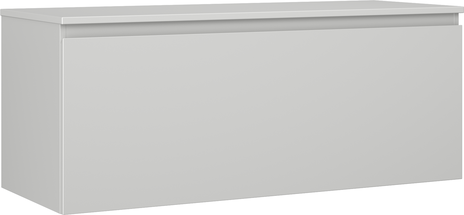 Specyfikacja produktu: Wymiary szafki: Szerokość: 120 cm Wysokość: 47 cm Głębokość: 46 cm Kolor korpus: Szary mat Materiał korpus: Płyta lakierowana Kolor front: Szary mat Materiał front: Płyta MDF lakierowana Struktura frontu: Gładka Ilość szuflad: 1 Przestronna szuflada z funkcją cichego domyku Pełny wysuw ułatwiający dostęp do zawartości szuflad Powierzchnia odporna na promienie UV Wymiary blatu: Szerokość: 120,6 cm Głębokość: 46,5 cm Grubość: 1,8 cm Kolor blatu: Szary mat Materiał blatu: Płyta MDF lakierowana Powierzchnia odporna na promienie UV Idealny jako podstawa do umywalek nablatowych Produkt zmontowany