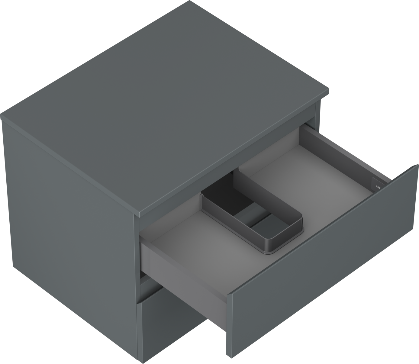 Specyfikacja produktu: Wymiary szafki: Szerokość: 60 cm Wysokość: 47 cm Głębokość: 46 cm Kolor korpus: Grafit mat Materiał korpus: Płyta lakierowana Kolor front: Grafit mat Materiał front: Płyta MDF lakierowana Struktura frontu: Gładka Ilość szuflad: 2 Przestronna szuflada z funkcją cichego domyku Pełny wysuw ułatwiający dostęp do zawartości szuflad Powierzchnia odporna na promienie UV Wymiary blatu: Szerokość: 60,6 cm Głębokość: 46,5 cm Grubość: 1,8 cm Kolor blatu: Grafit mat Materiał blatu: Płyta MDF lakierowana Powierzchnia odporna na promienie UV Idealny jako podstawa do umywalek nablatowych Produkt zmontowany
