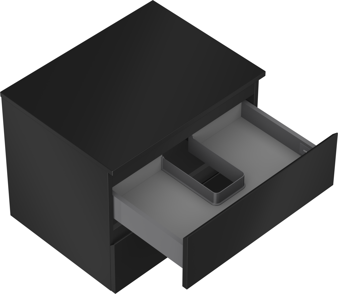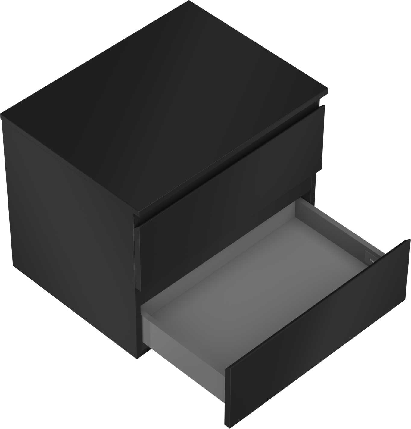 Specyfikacja produktu: Wymiary szafki: Szerokość: 60 cm Wysokość: 47 cm Głębokość: 46 cm Kolor korpus: Czarny mat Materiał korpus: Płyta lakierowana Kolor front: Czarny mat Materiał front: Płyta MDF lakierowana Struktura frontu: Gładka Ilość szuflad: 2 Przestronna szuflada z funkcją cichego domyku Pełny wysuw ułatwiający dostęp do zawartości szuflad Powierzchnia odporna na promienie UV Wymiary blatu: Szerokość: 60,6 cm Głębokość: 46,5 cm Grubość: 1,8 cm Kolor blatu: Czarny mat Materiał blatu: Płyta MDF lakierowana Powierzchnia odporna na promienie UV Idealny jako podstawa do umywalek nablatowych Produkt zmontowany