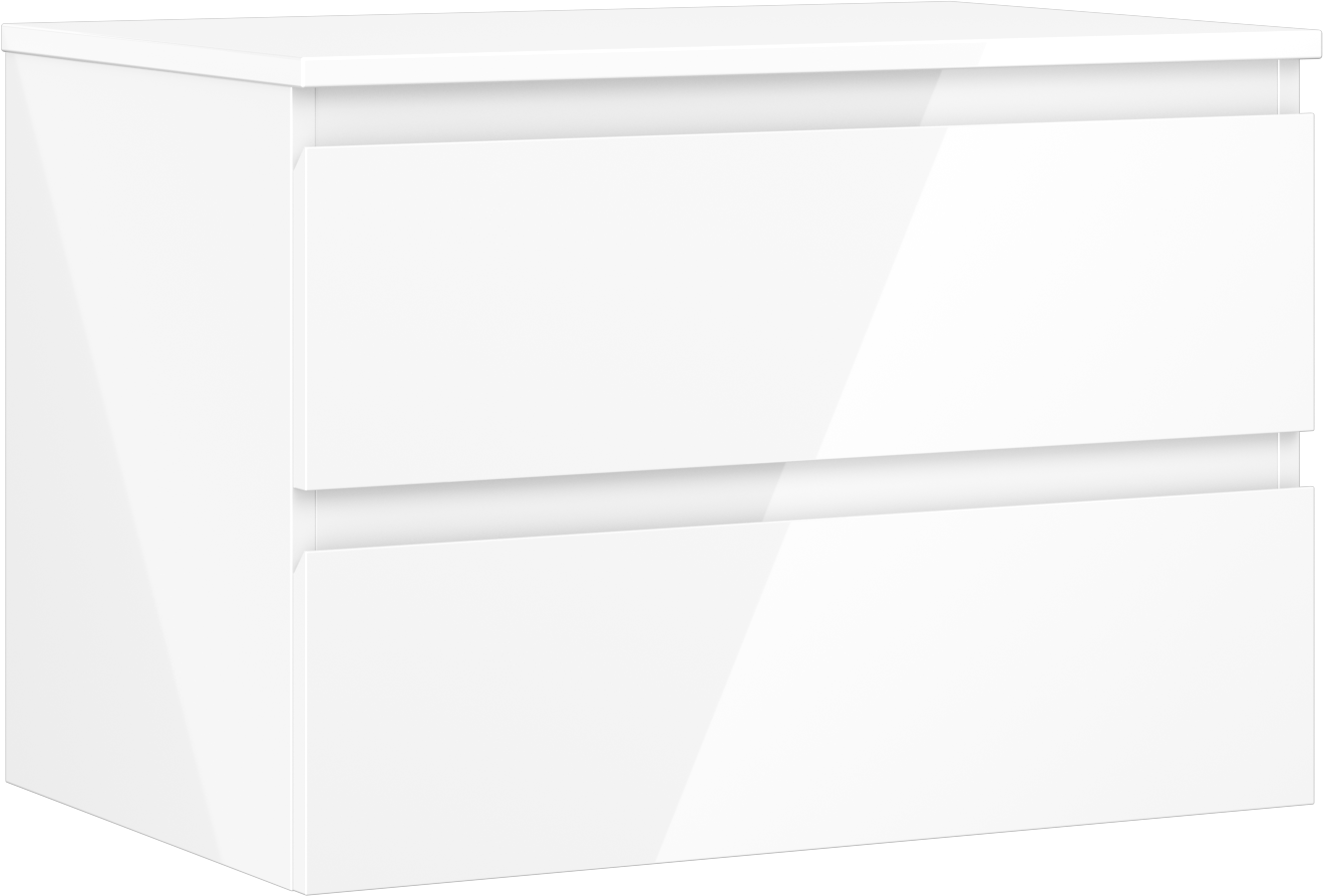 Specyfikacja produktu: Wymiary szafki: Szerokość: 70 cm Wysokość: 47 cm Głębokość: 46 cm Kolor korpus: Biały połysk  Materiał korpus: Płyta lakierowana Kolor front: Biały połysk Materiał front: Płyta MDF lakierowana Struktura frontu: Gładka Ilość szuflad: 2 Przestronna szuflada z funkcją cichego domyku Pełny wysuw ułatwiający dostęp do zawartości szuflad Powierzchnia odporna na promienie UV Wymiary blatu: Szerokość: 70,6 cm Głębokość: 46,5 cm Grubość: 1,8 cm Kolor blatu: Biały połysk Materiał blatu: Płyta MDF lakierowana Powierzchnia odporna na promienie UV Idealny jako podstawa do umywalek nablatowych Produkt zmontowany