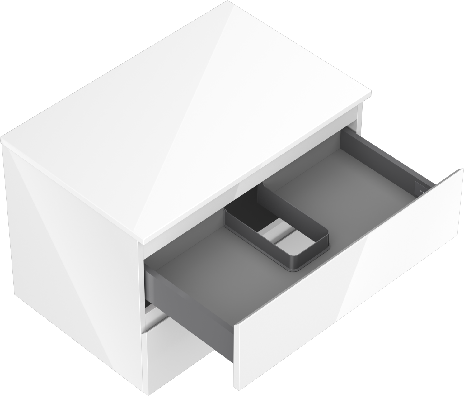 Wycięcie w szufladzie jest zaprojektowane w taki sposób, aby pomieścić syfon, który jest niezbędny w instalacjach umywalkowych. Dzięki temu mebel może być zamontowany w pełni funkcjonalnie, bez konieczności rezygnowania z przestrzeni w szufladzie na rzecz instalacji.