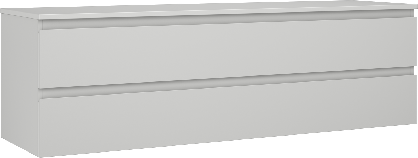 Specyfikacja produktu: Wymiary szafki: Szerokość: 160 cm Wysokość: 47 cm Głębokość: 46 cm Kolor korpus: Szary mat Materiał korpus: Płyta lakierowana Kolor front: Szary mat Materiał front: Płyta MDF lakierowana Struktura frontu: Gładka Ilość szuflad: 2 Przestronna szuflada z funkcją cichego domyku Pełny wysuw ułatwiający dostęp do zawartości szuflad Powierzchnia odporna na promienie UV Wymiary blatu: Szerokość: 160,6 cm Głębokość: 46,5 cm Grubość: 1,8 cm Kolor blatu: Szary mat Materiał blatu: Płyta MDF lakierowana Powierzchnia odporna na promienie UV Idealny jako podstawa do umywalek nablatowych Produkt zmontowany