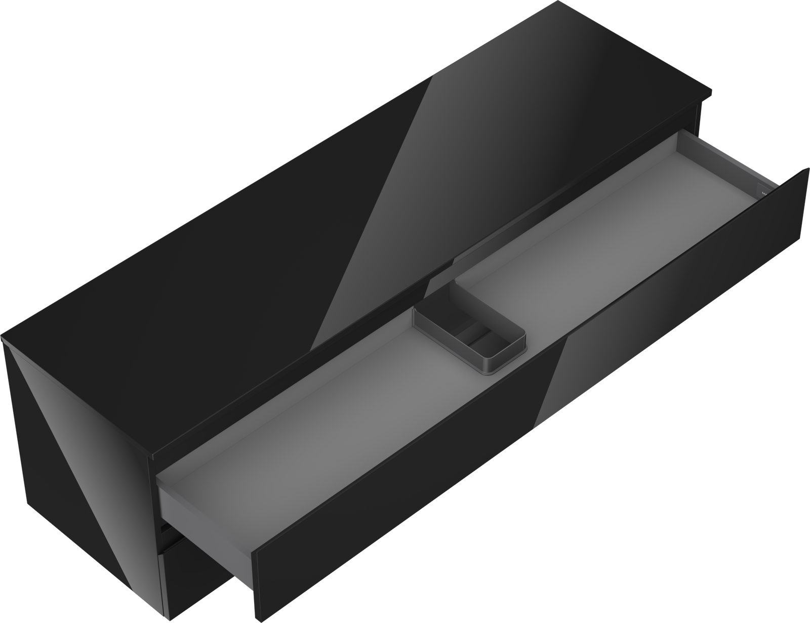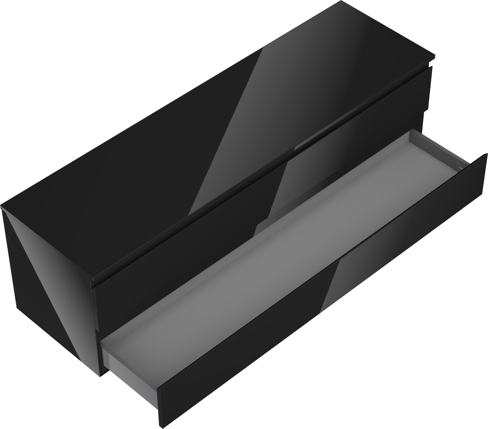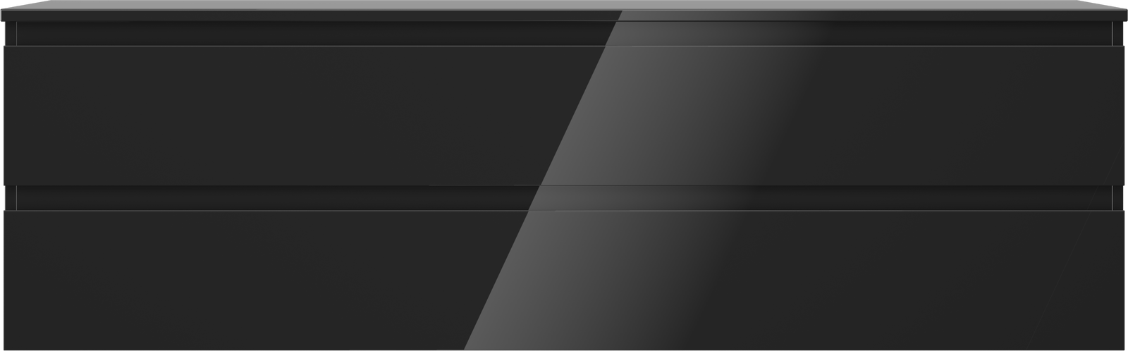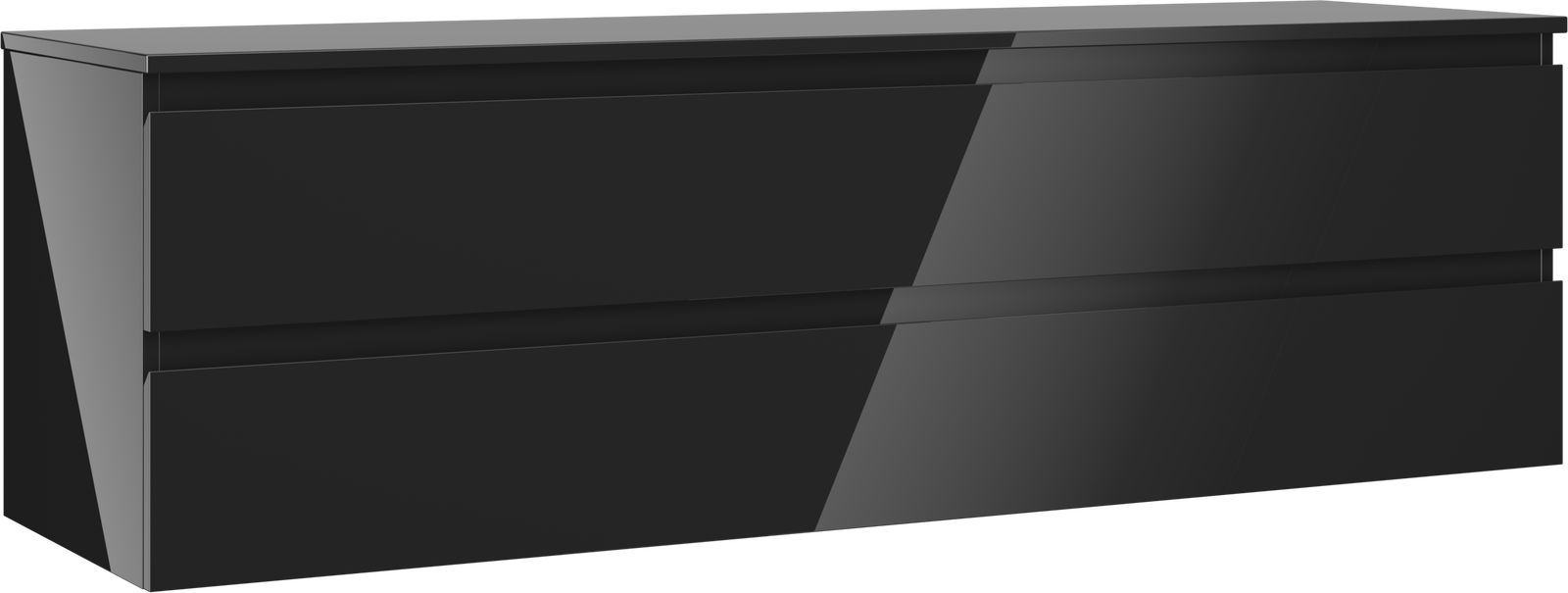 Specyfikacja produktu: Wymiary szafki: Szerokość: 160 cm Wysokość: 47 cm Głębokość: 46 cm Kolor korpus: Czarny połysk  Materiał korpus: Płyta lakierowana Kolor front: Czarny połysk Materiał front: Płyta MDF lakierowana Struktura frontu: Gładka Ilość szuflad: 2 Przestronna szuflada z funkcją cichego domyku Pełny wysuw ułatwiający dostęp do zawartości szuflad Powierzchnia odporna na promienie UV Wymiary blatu: Szerokość: 160,6 cm Głębokość: 46,5 cm Grubość: 1,8 cm Kolor blatu: Czarny połysk Materiał blatu: Płyta MDF lakierowana Powierzchnia odporna na promienie UV Idealny jako podstawa do umywalek nablatowych Produkt zmontowany
