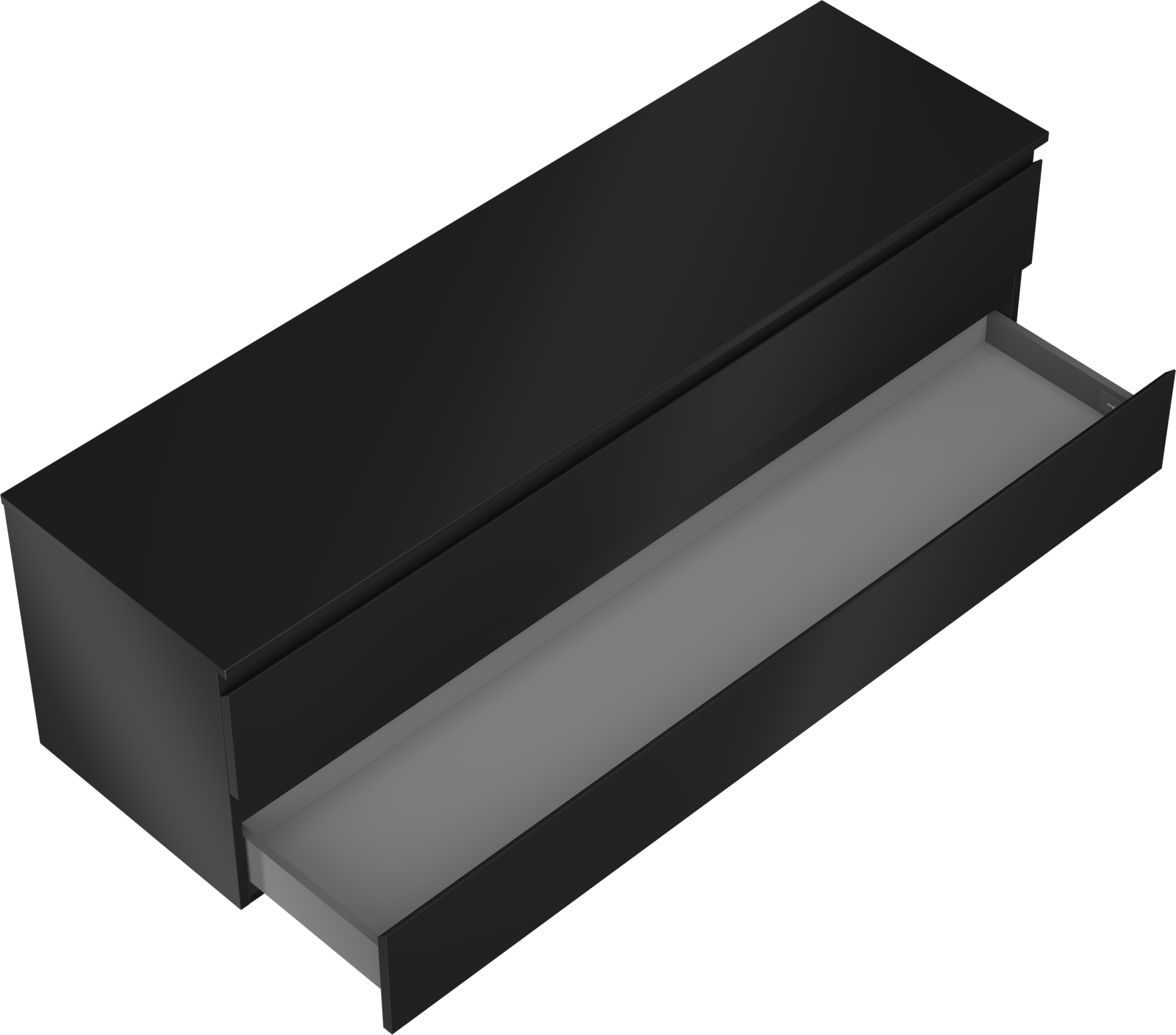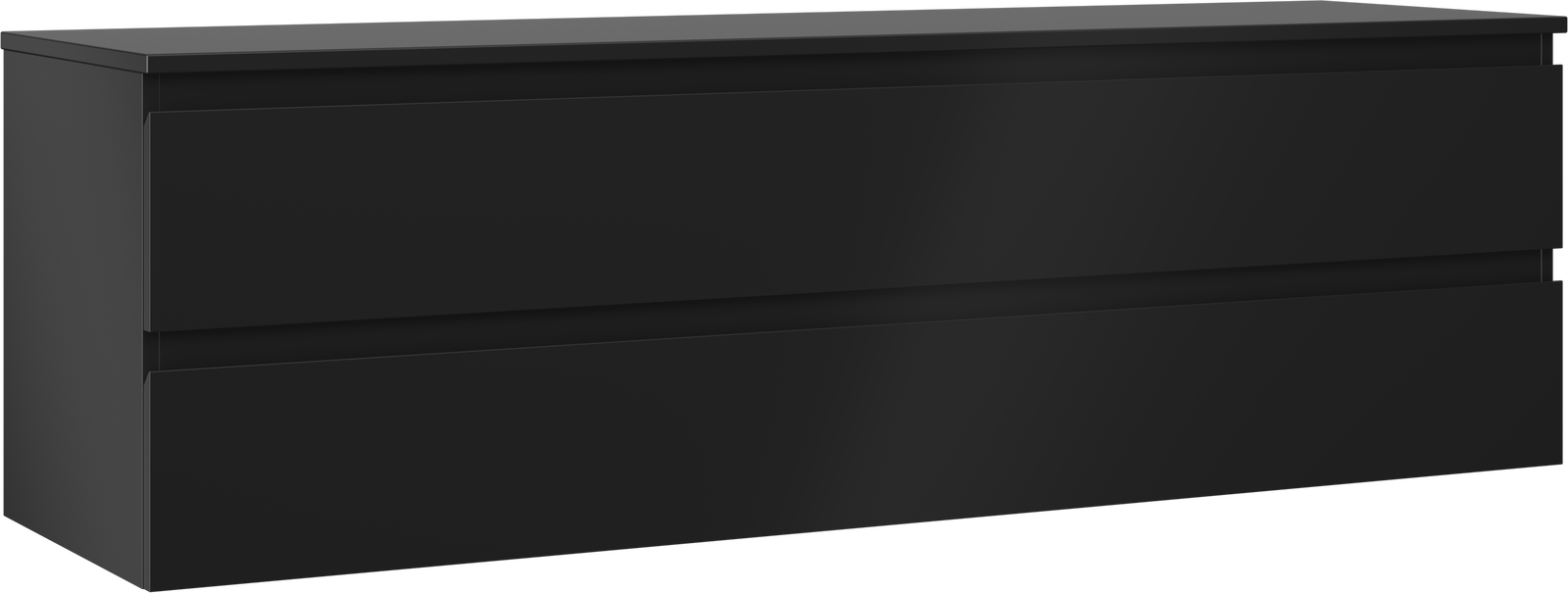 Specyfikacja produktu: Wymiary szafki: Szerokość: 160 cm Wysokość: 47 cm Głębokość: 46 cm Kolor korpus: Czarny mat Materiał korpus: Płyta lakierowana Kolor front: Czarny mat Materiał front: Płyta MDF lakierowana Struktura frontu: Gładka Ilość szuflad: 2 Przestronna szuflada z funkcją cichego domyku Pełny wysuw ułatwiający dostęp do zawartości szuflad Powierzchnia odporna na promienie UV Wymiary blatu: Szerokość: 160,6 cm Głębokość: 46,5 cm Grubość: 1,8 cm Kolor blatu: Czarny mat Materiał blatu: Płyta MDF lakierowana Powierzchnia odporna na promienie UV Idealny jako podstawa do umywalek nablatowych Produkt zmontowany