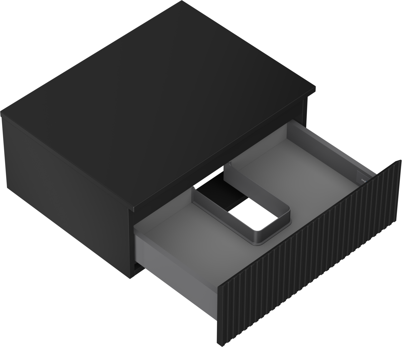 Wycięcie w szufladzie jest zaprojektowane w taki sposób, aby pomieścić syfon, który jest niezbędny w instalacjach umywalkowych. Dzięki temu mebel może być zamontowany w pełni funkcjonalnie, bez konieczności rezygnowania z przestrzeni w szufladzie na rzecz instalacji.