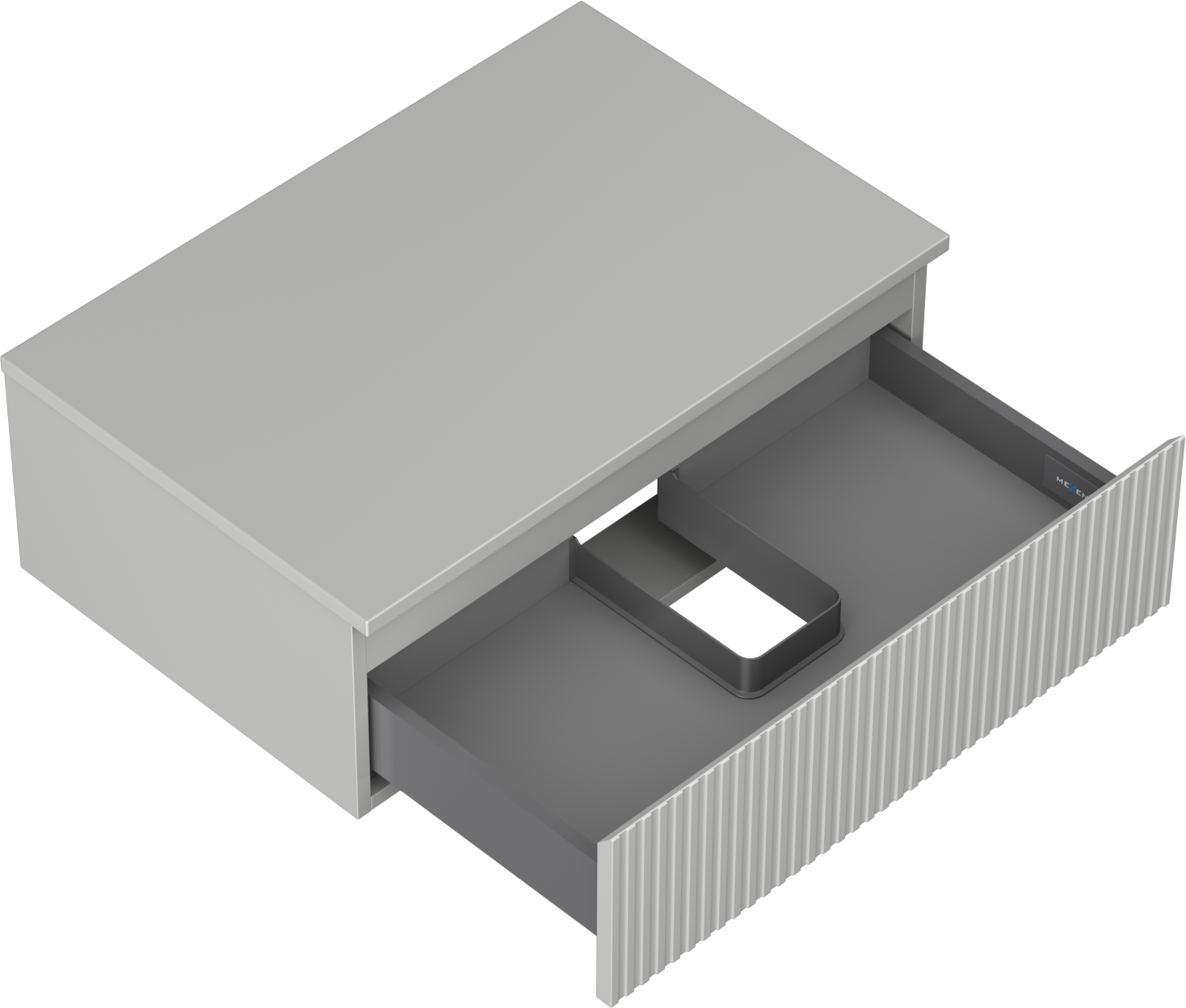 Wycięcie w szufladzie jest zaprojektowane w taki sposób, aby pomieścić syfon, który jest niezbędny w instalacjach umywalkowych. Dzięki temu mebel może być zamontowany w pełni funkcjonalnie, bez konieczności rezygnowania z przestrzeni w szufladzie na rzecz instalacji.