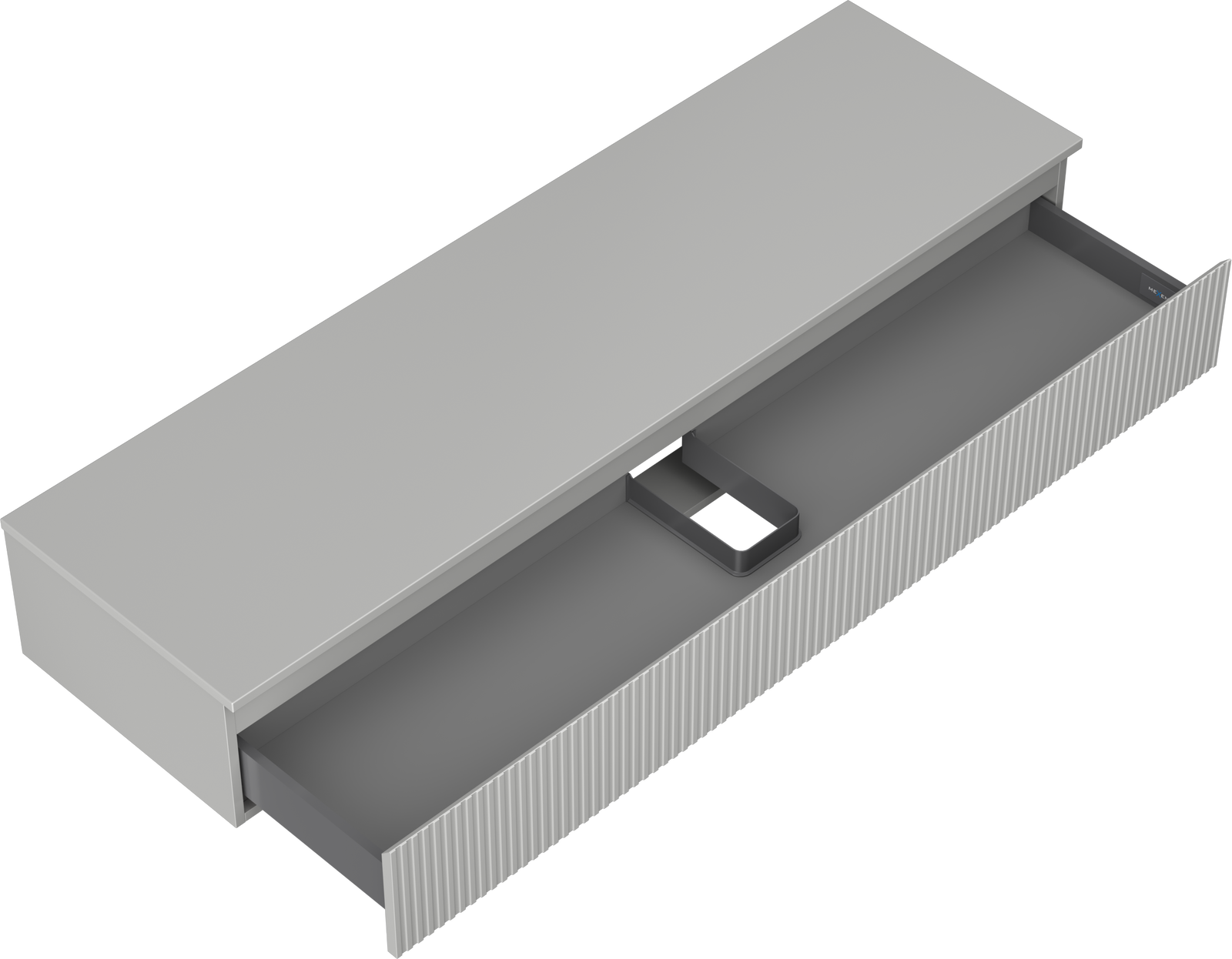 Wycięcie w szufladzie jest zaprojektowane w taki sposób, aby pomieścić syfon, który jest niezbędny w instalacjach umywalkowych. Dzięki temu mebel może być zamontowany w pełni funkcjonalnie, bez konieczności rezygnowania z przestrzeni w szufladzie na rzecz instalacji.
