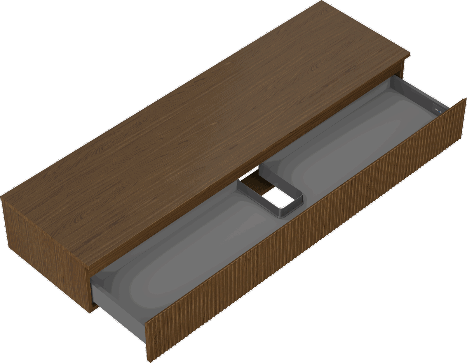 Mexen Rivel szafka łazienkowa podumywalkowa 160 cm z blatem, 1 szuflada, ryflowana , orzech - 91A20-16023-1-BFC86