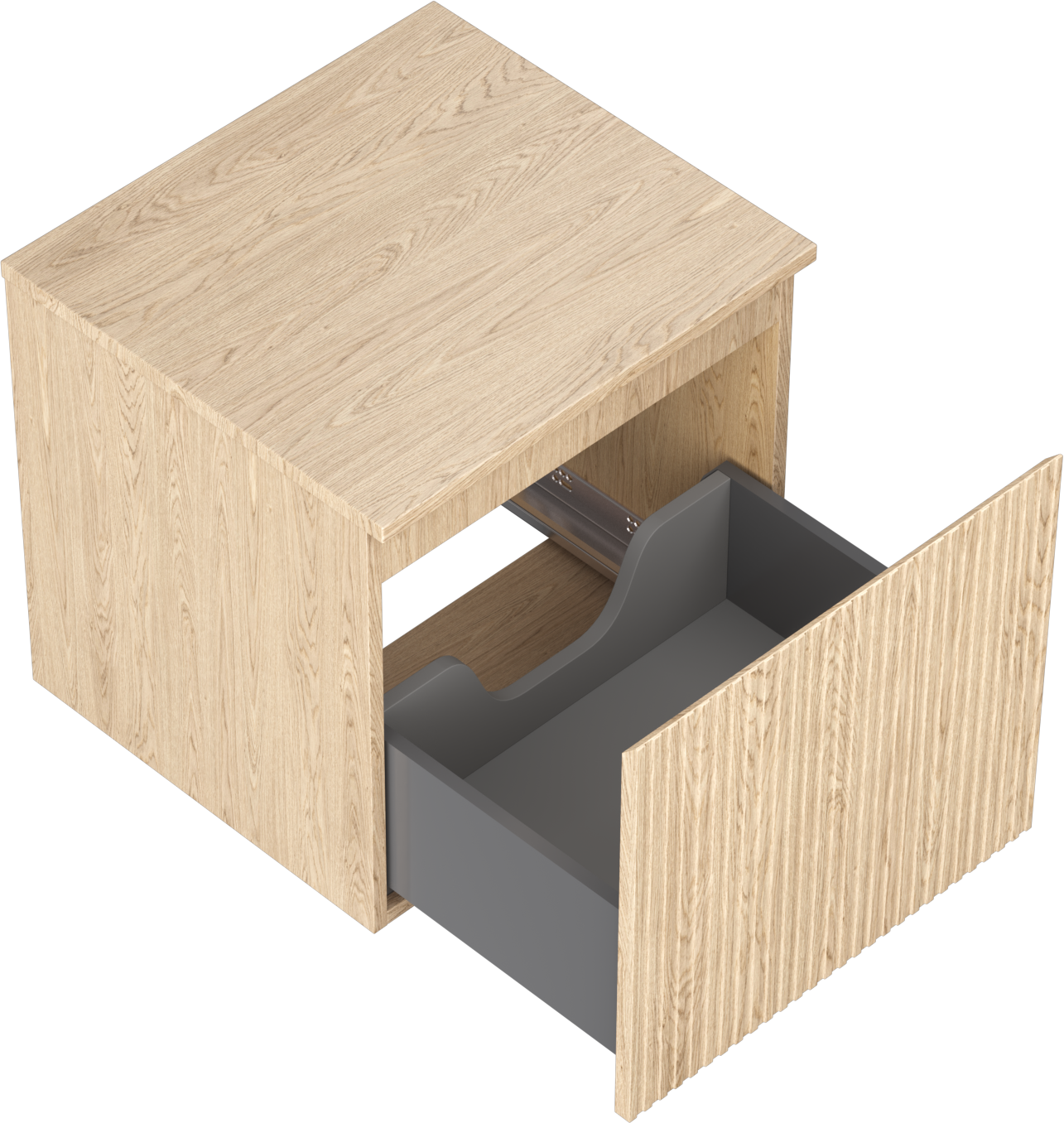 Wycięcie w szufladzie jest zaprojektowane w taki sposób, aby pomieścić syfon, który jest niezbędny w instalacjach umywalkowych. Dzięki temu mebel może być zamontowany w pełni funkcjonalnie, bez konieczności rezygnowania z przestrzeni w szufladzie na rzecz instalacji.