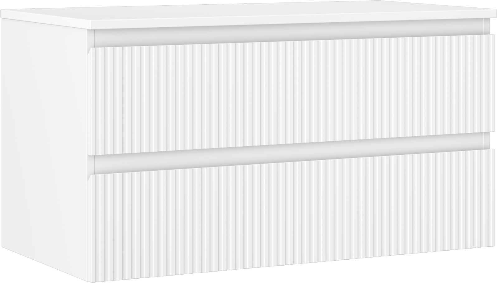 Mexen Rivel szafka łazienkowa podumywalkowa 90 cm z blatem, 2 szuflady, ryflowana , biała mat - 91A20-09047-2-BFFC01