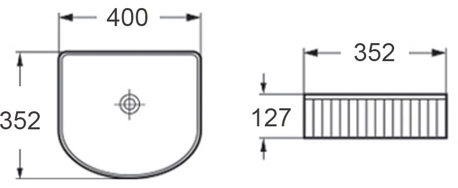 Specyfikacja produktu: Rozmiar: 40x35,2x12,7 cm Typ: Nablatowa Kolor: Biały Otwór przelewowy: Nie Otwór na baterie: Nie Materiał: Ceramika sanitarna