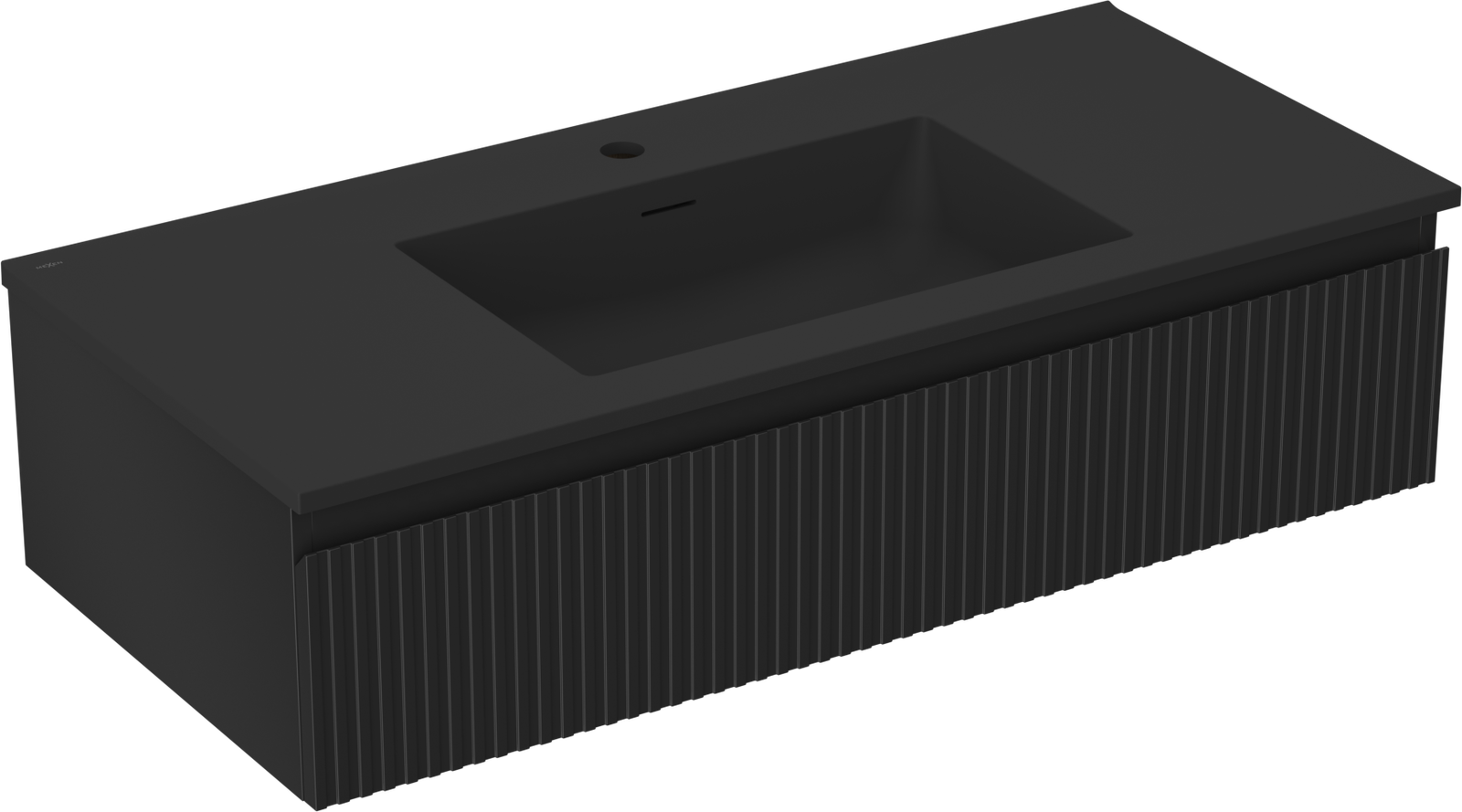 Mexen Rivel szafka łazienkowa 100 cm z umywalką Otis, 1 szuflada, ryflowana , czarna mat - 91A20-10023-1-BF71-W18M71