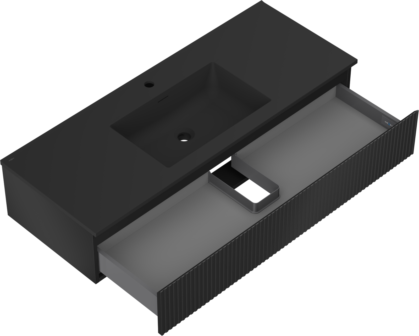 Mexen Rivel szafka łazienkowa 120 cm z umywalką Otis, 1 szuflada, ryflowana , czarna mat - 91A20-12023-1-BF71-W18M71