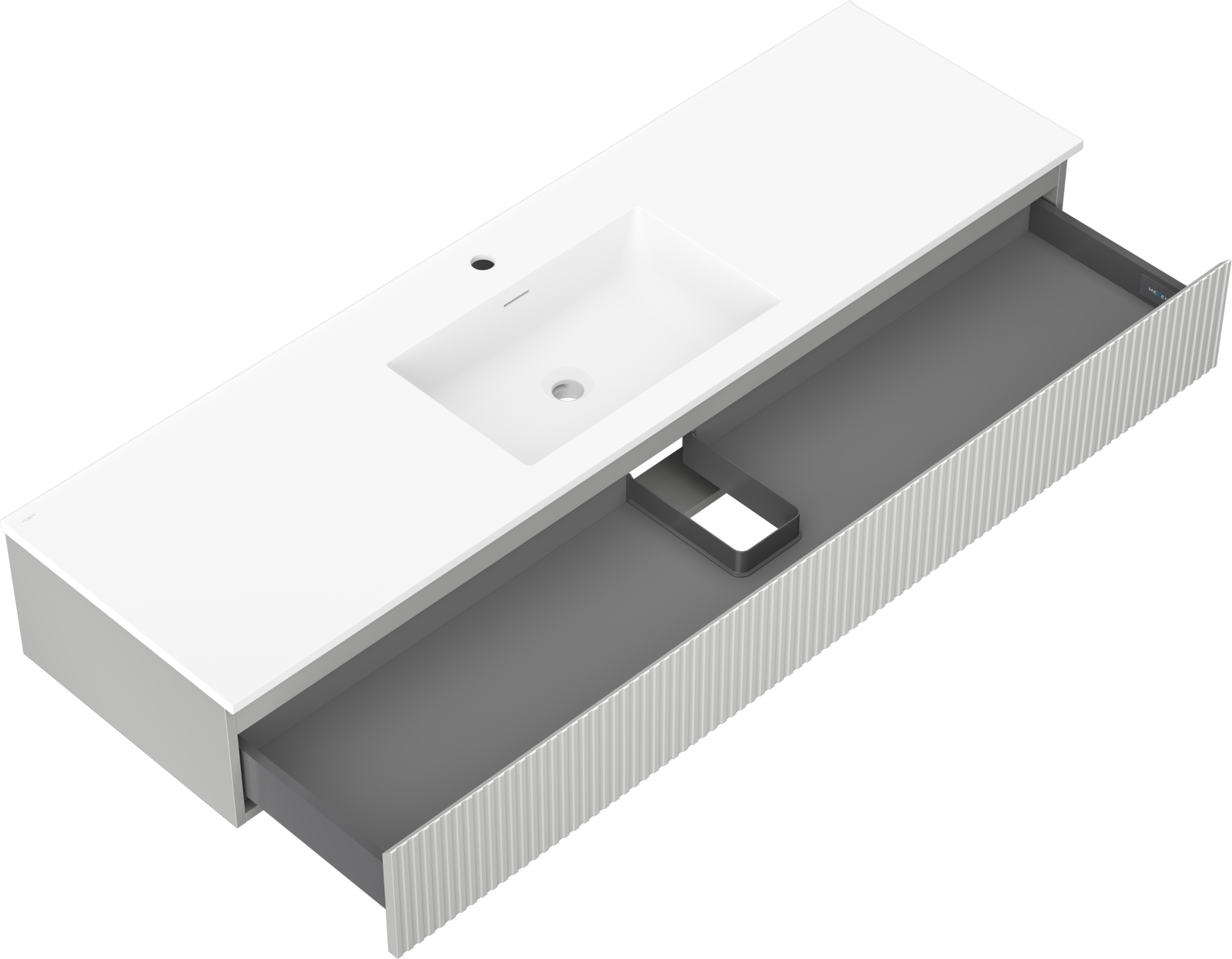 Mexen Rivel szafka łazienkowa 160 cm z umywalką Otis, 1 szuflada, ryflowana , szara mat/biała mat - 91A20-16023-1-BF62-W18M01