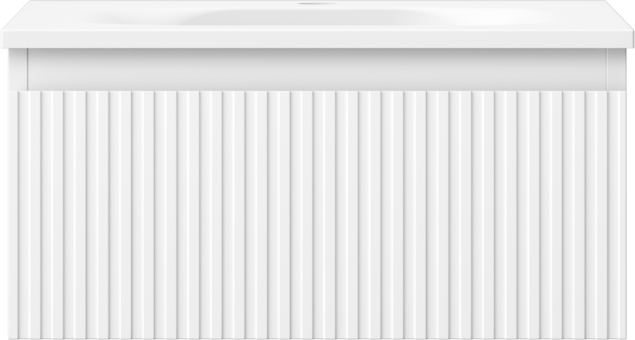 Specyfikacja produktu: Wymiary szafki: Szerokość: 50 cm Głębokość: 46 cm Wysokość: 23,5 cm Kolor korpus: Biały mat  Materiał korpus: Płyta lakierowana Kolor front: Biały mat  Materiał front: Płyta MDF lakierowana Struktura frontu: Ryflowana Ilość szuflad: 1 Przestronna szuflada z funkcją cichego domyku Powierzchnia odporna na promienie UV Wymiary umywalki: Szerokość: 51 cm Głębokość: 46,5 cm Wysokość: 16,5 cm Kolor umywalki: Biały mat  Materiał umywalki: Konglomerat Otwór przelewowy: Tak Otwór na baterie: Tak Produkt zmontowany
