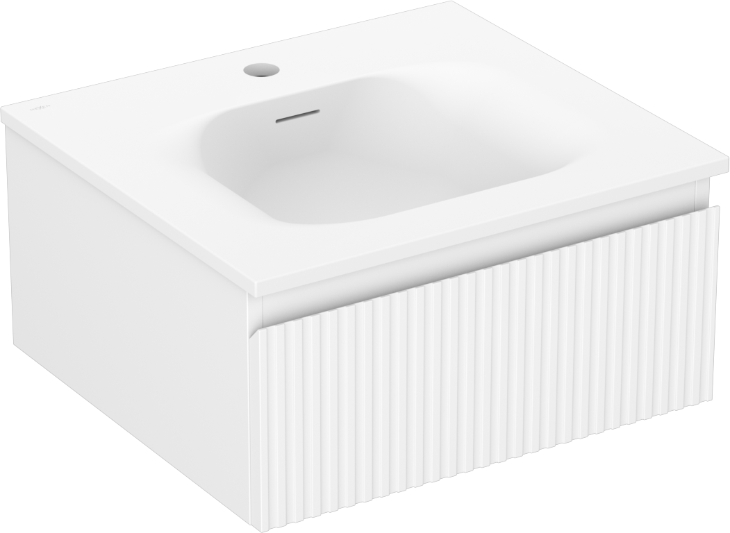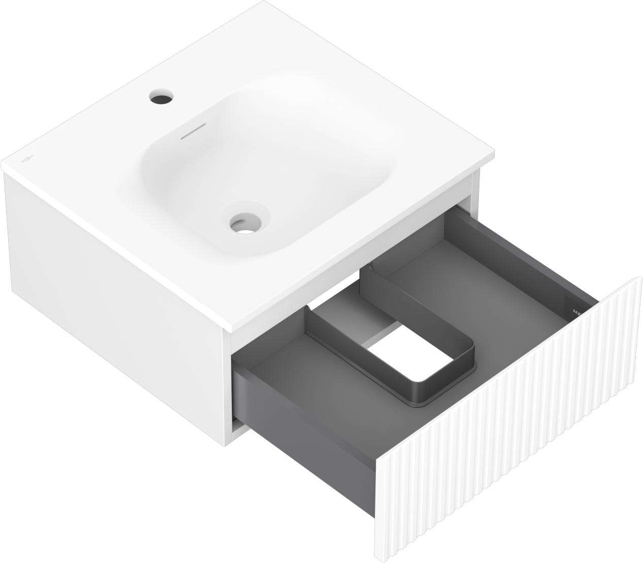 • Mexen Rivel szafka łazienkowa 50 cm z umywalką Vela, 1 szuflada, ryflowana , biała mat - 91A20-05023-1-BF01-W23M01