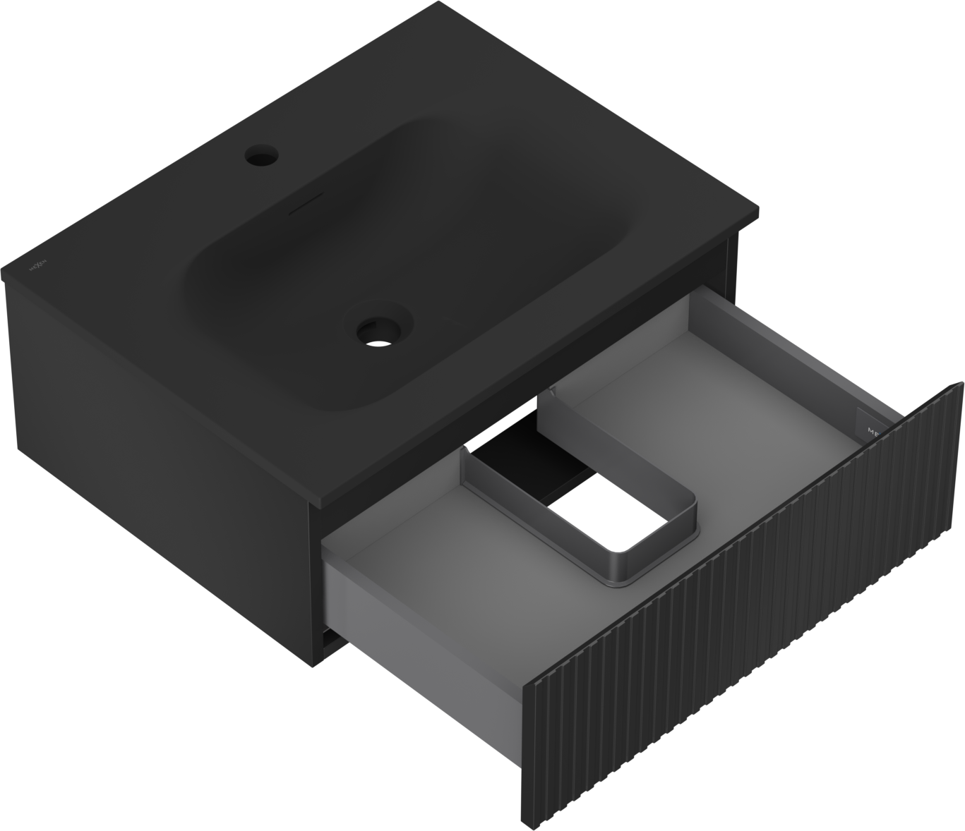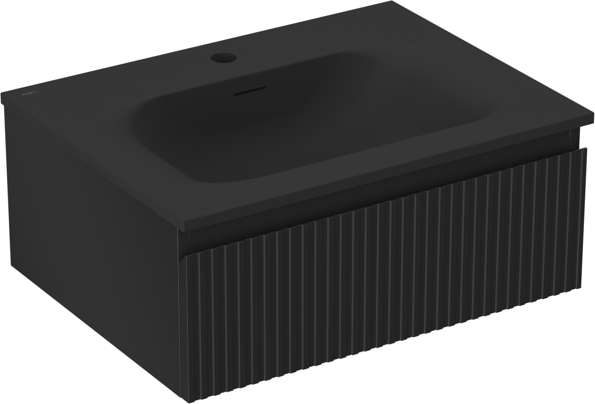 Mexen Rivel szafka łazienkowa 60 cm z umywalką Vela, 1 szuflada, ryflowana , czarna mat - 91A20-06023-1-BF71-W23M71