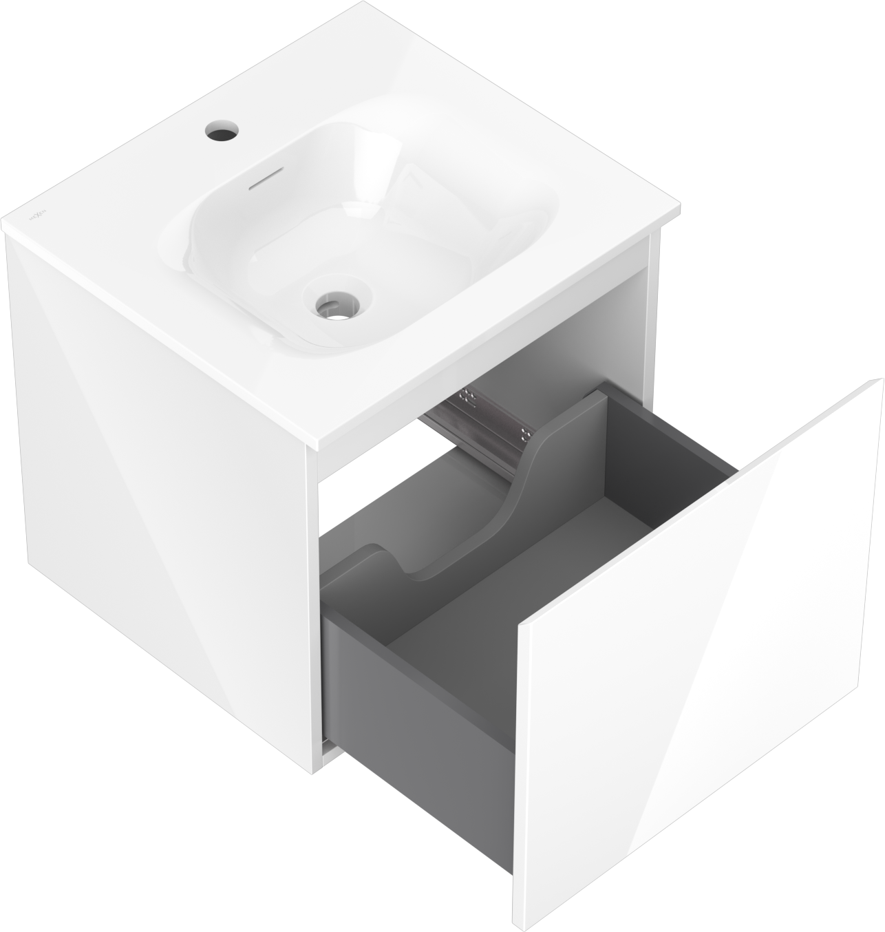 Wycięcie w szufladzie jest zaprojektowane w taki sposób, aby pomieścić syfon, który jest niezbędny w instalacjach umywalkowych. Dzięki temu mebel może być zamontowany w pełni funkcjonalnie, bez konieczności rezygnowania z przestrzeni w szufladzie na rzecz instalacji.