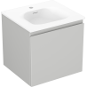 Umywalka posiada otwór, w którym możemy zamontować baterię. Pozwala to zaoszczędzić cenną przestrzeń w łazience oraz podkreślić jej estetykę. Rozwiązanie to umożliwia również łatwiejsze utrzymanie czystości wokół umywalki.