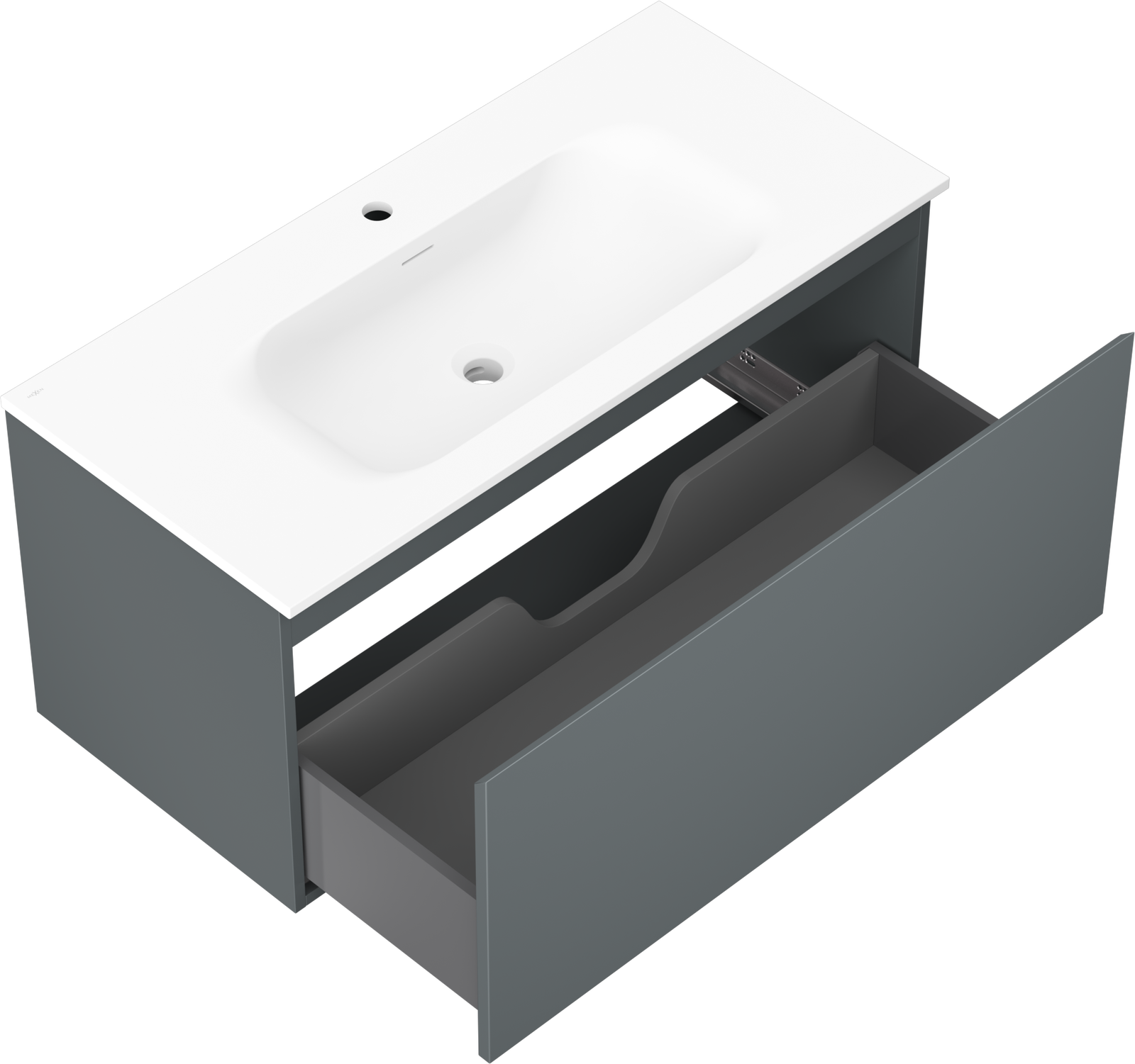 Mexen Orio szafka łazienkowa 100 cm z umywalką Vela, 1 szuflada, grafit mat/biała mat - 91A10-10047-1-BF66-W23M01