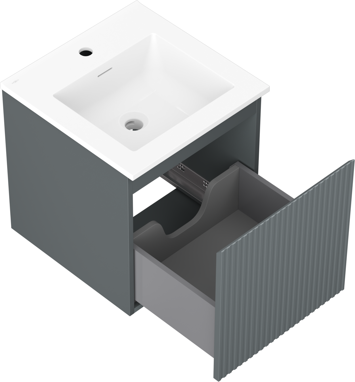 Mexen Rivel szafka łazienkowa 45 cm z umywalką Otis, 1 szuflada, ryflowana , grafit mat/biała mat - 91A20-04547-1-BF66-W18M01