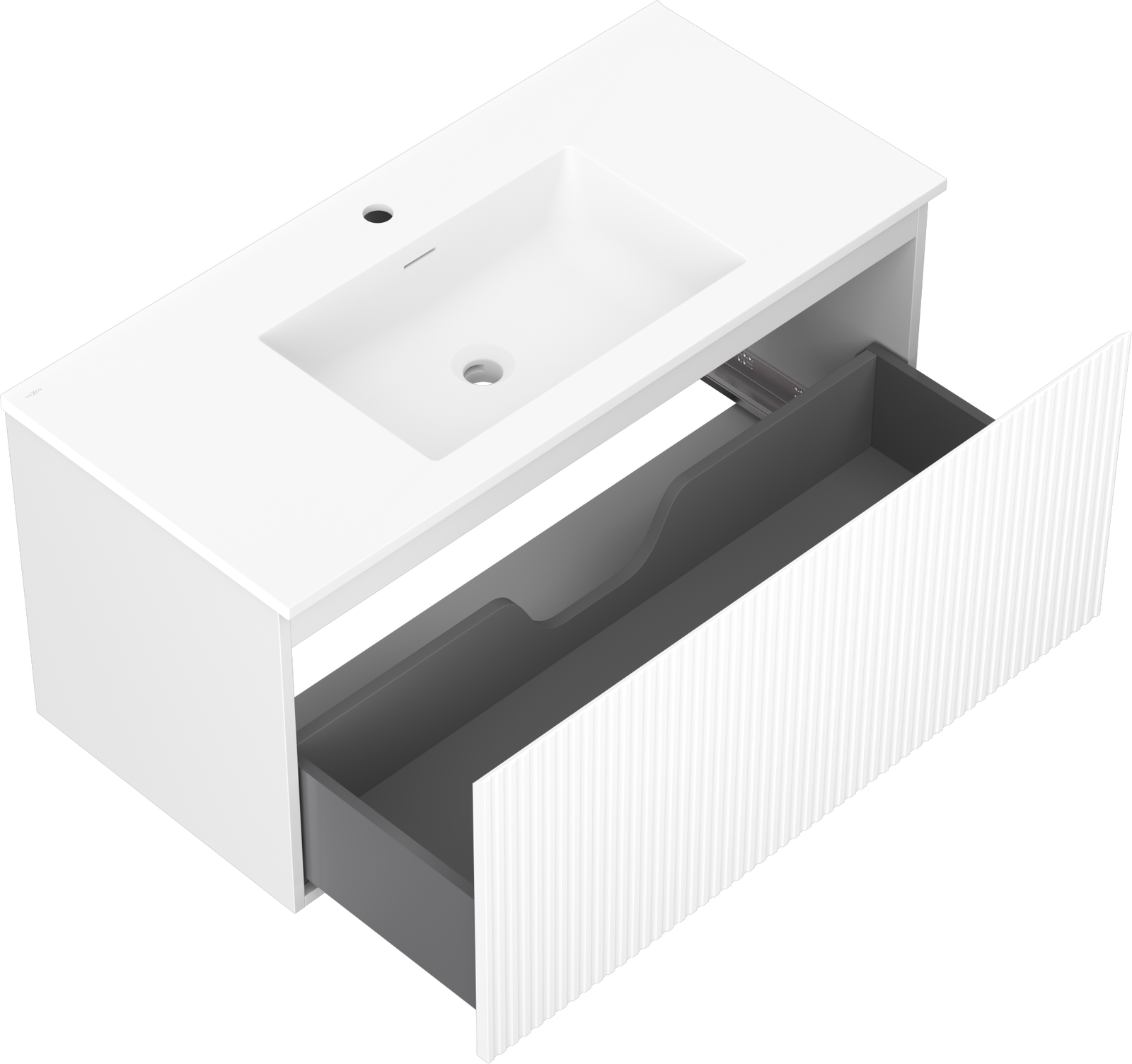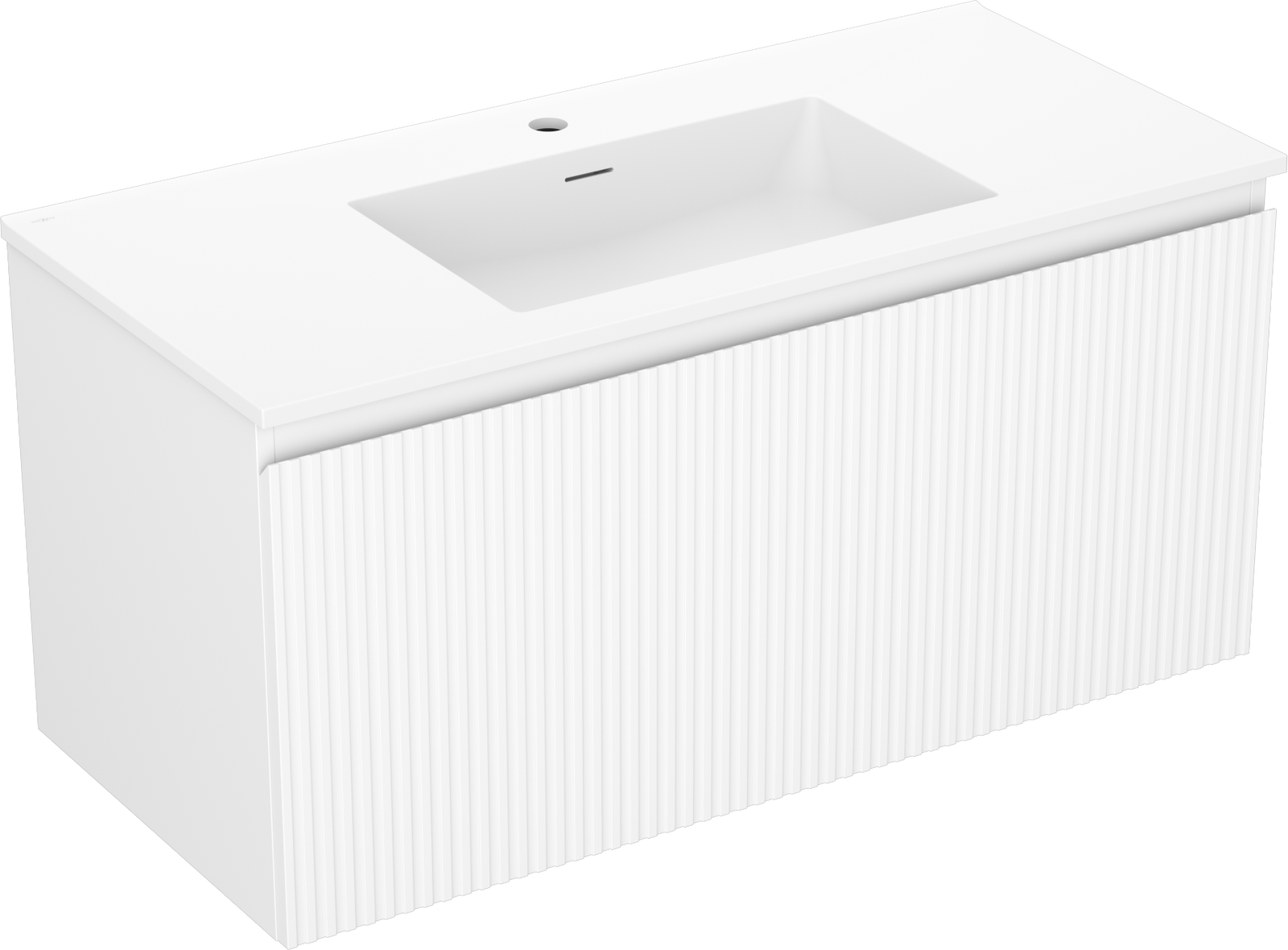 Mexen Rivel szafka łazienkowa 100 cm z umywalką Otis, 1 szuflada, ryflowana , biała mat - 91A20-10047-1-BF01-W18M01