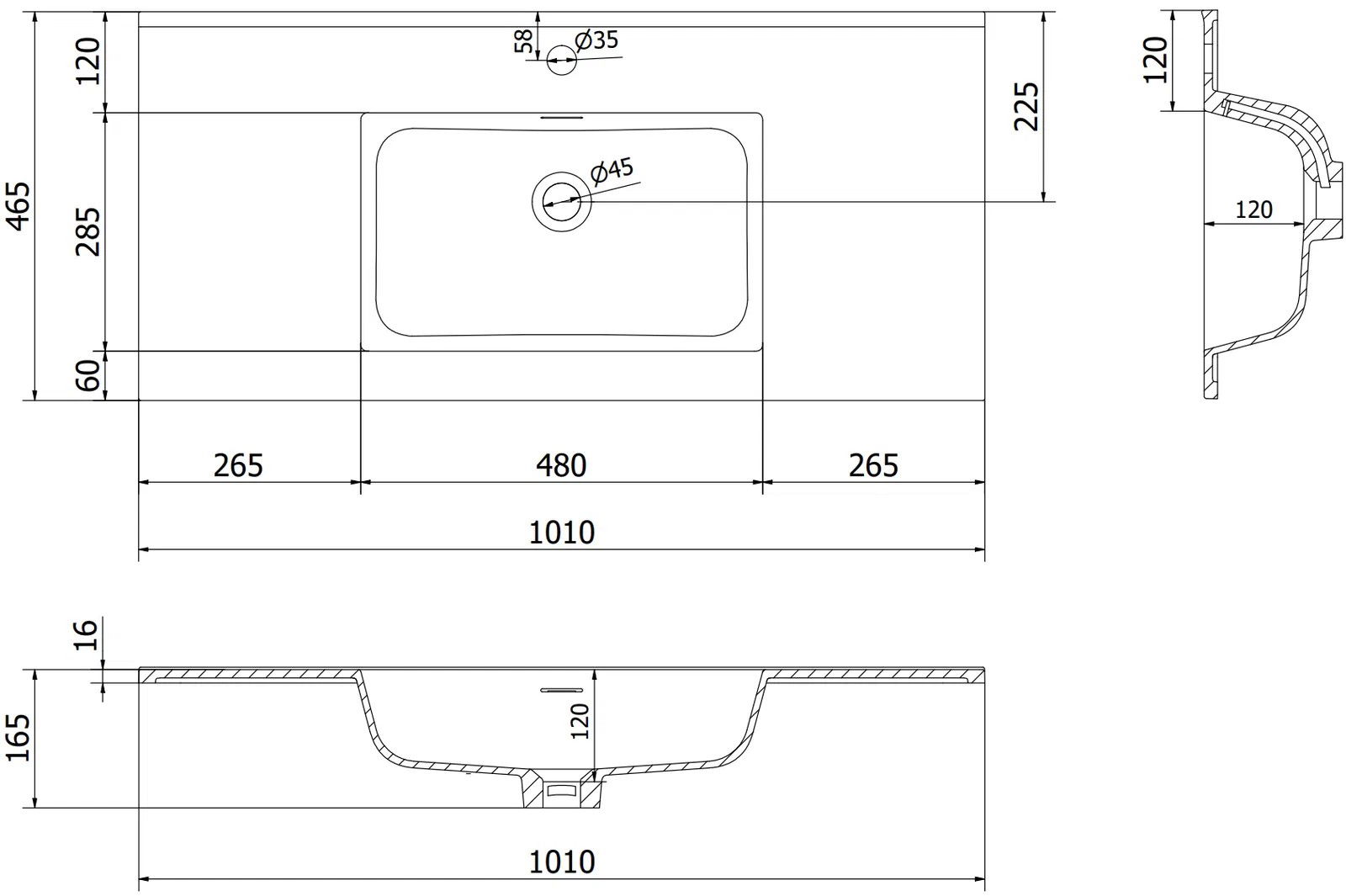Wycięcie w szufladzie jest zaprojektowane w taki sposób, aby pomieścić syfon, który jest niezbędny w instalacjach umywalkowych. Dzięki temu mebel może być zamontowany w pełni funkcjonalnie, bez konieczności rezygnowania z przestrzeni w szufladzie na rzecz instalacji.