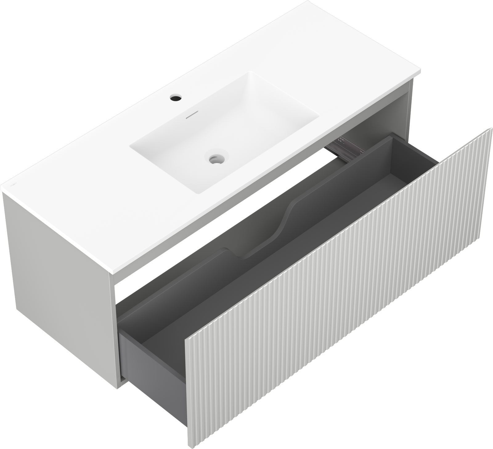 Mexen Rivel szafka łazienkowa 120 cm z umywalką Otis, 1 szuflada, ryflowana , szara mat/biała mat - 91A20-12047-1-BF62-W18M01