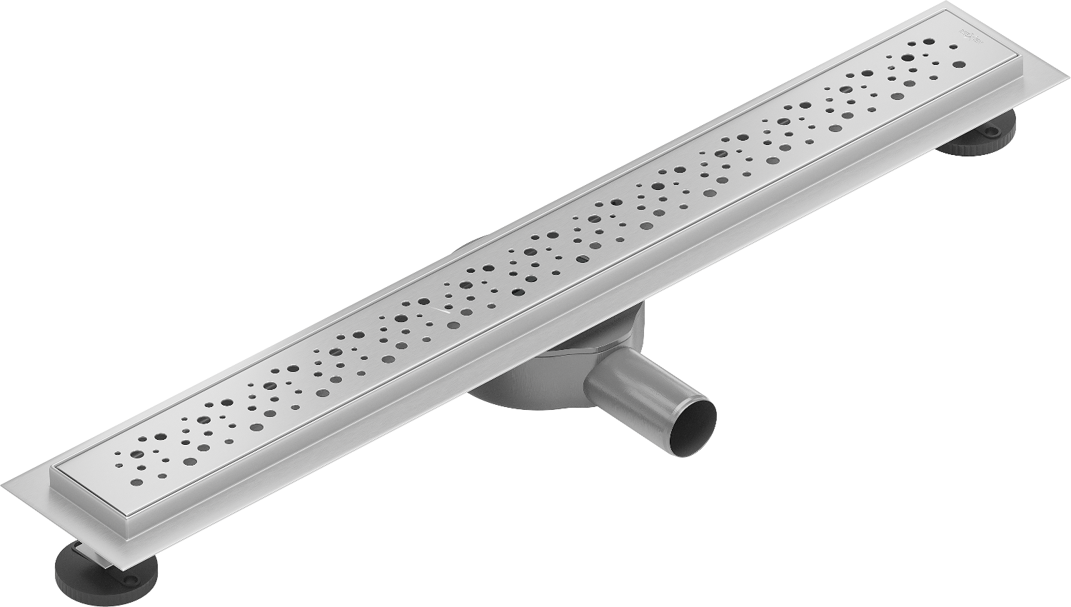 Odpływ jest wyposażony w regulowane nóżki, które umożliwiają dopasowanie odpowiedniej wysokości odpływu oraz wypoziomowanie na nierównej powierzchni. W ten sposób odpływ jest jeszcze lepiej dopasowany do warunków danej łazienki.