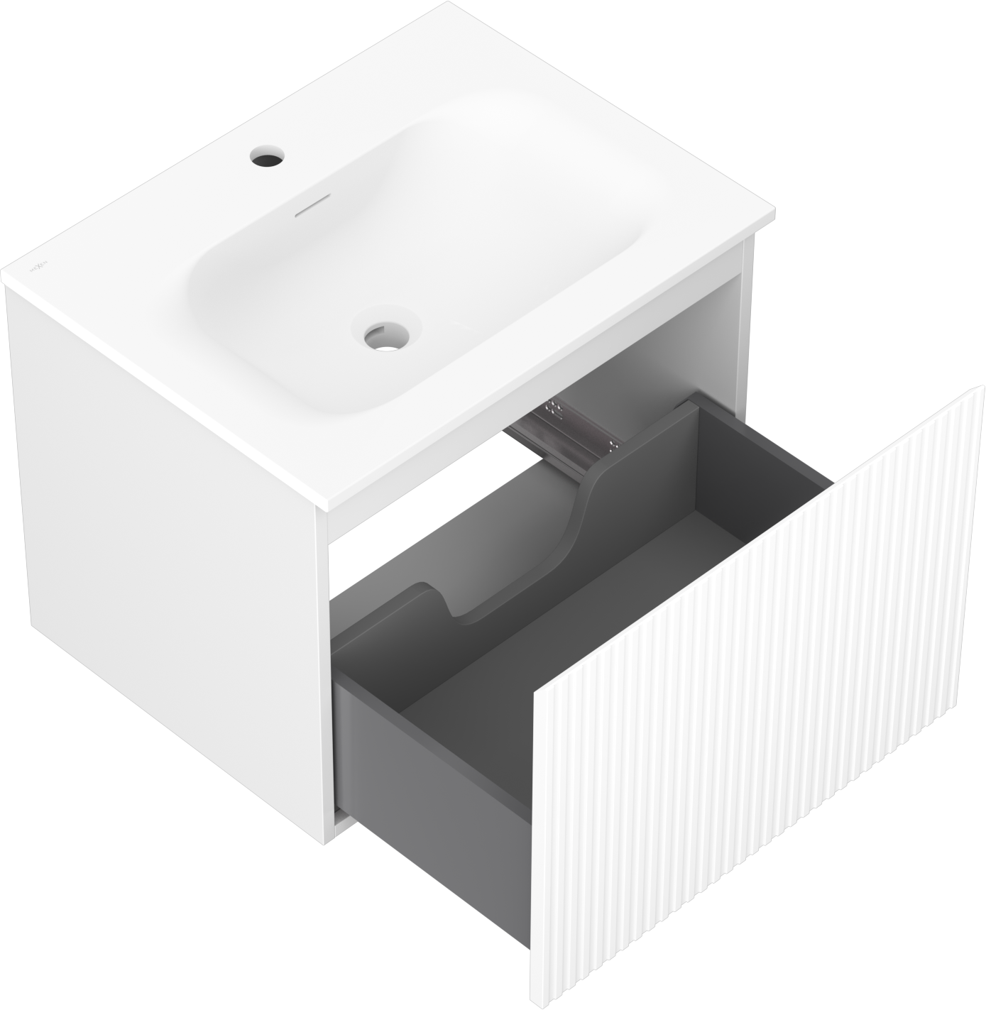 Mexen Rivel szafka łazienkowa 60 cm z umywalką Vela, 1 szuflada, ryflowana , biała mat - 91A20-06047-1-BF01-W23M01